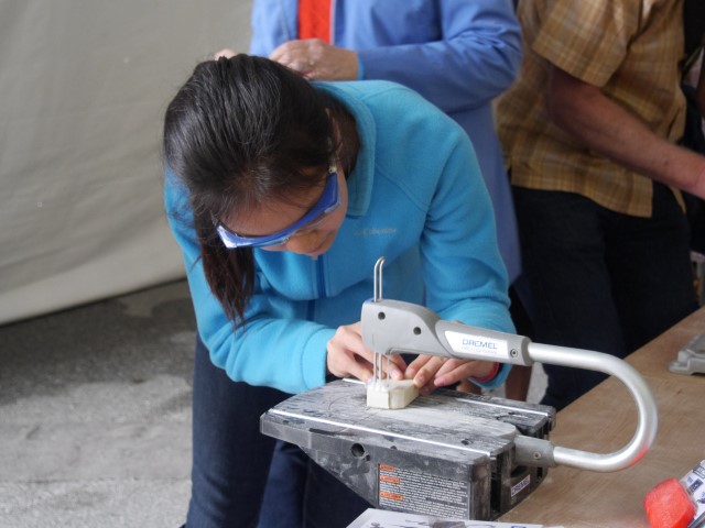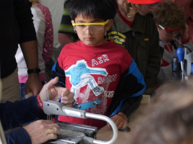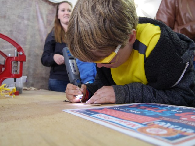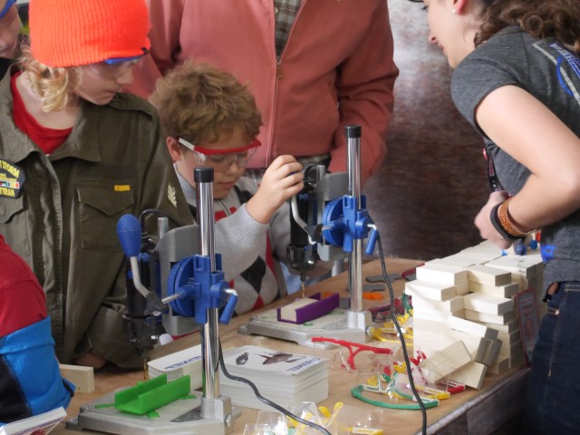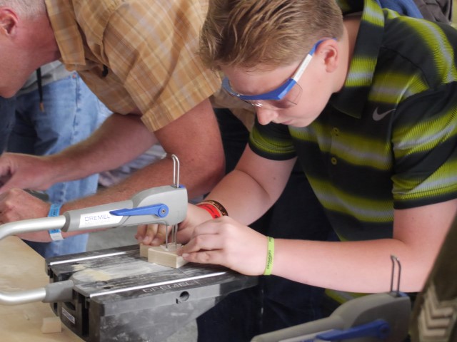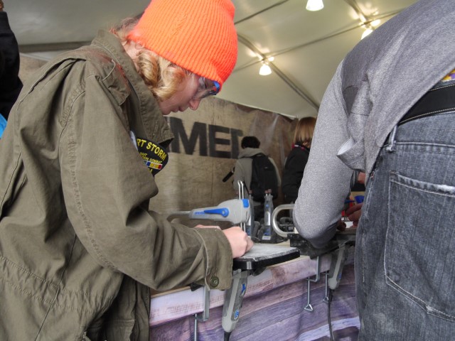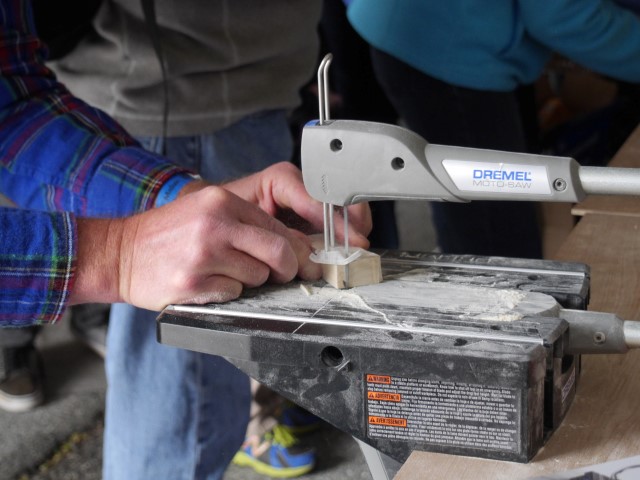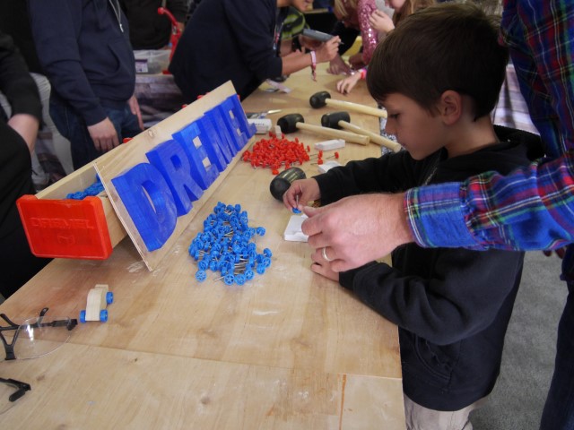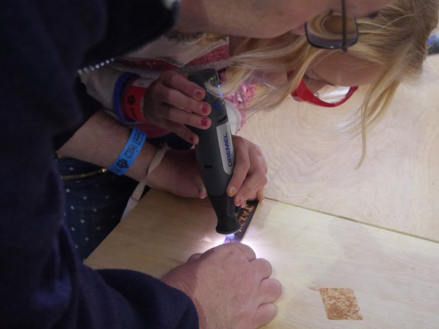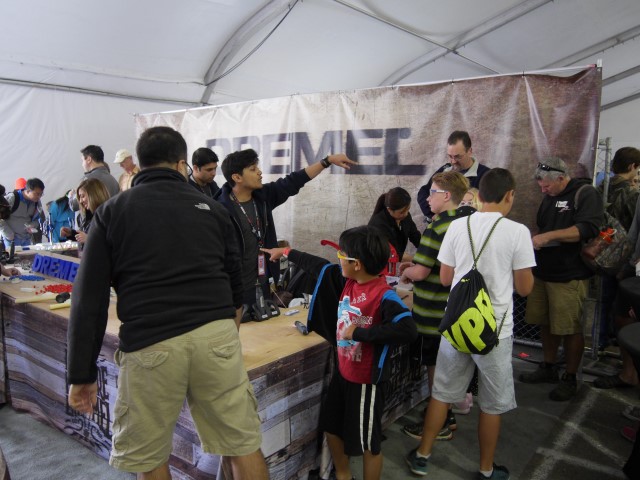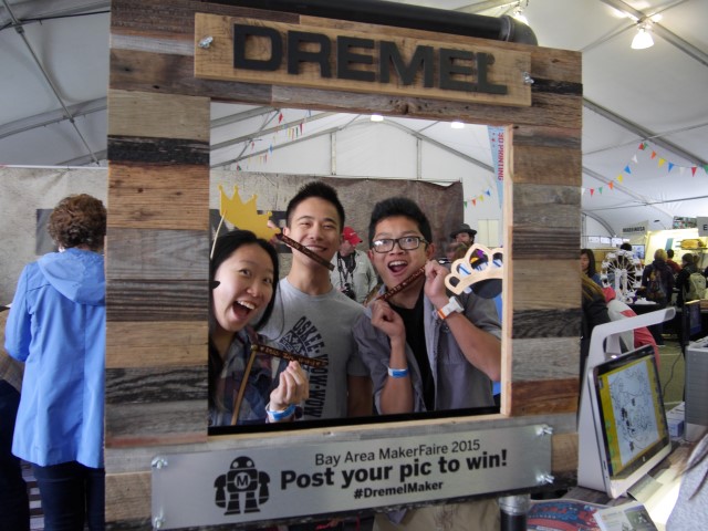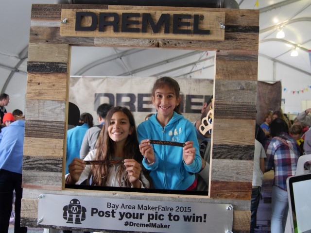 At Maker Faire, people can choose between hand-carving a leather bracelet or constructing an entire toy car using only the Dremel rotary tool, Dremel scroll saw and the Dremel Idea Builder 3D printer (one of which being given away at the event). Kids and adults alike are enjoying getting their hands dirty and stopping to snap a selfie with their new creations. The booth also includes a Sprout by HP computer, part of the recent 3D-focused partnership announced between the two companies at MakerCon.