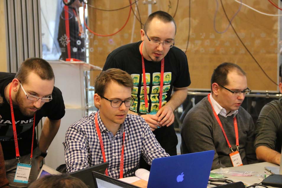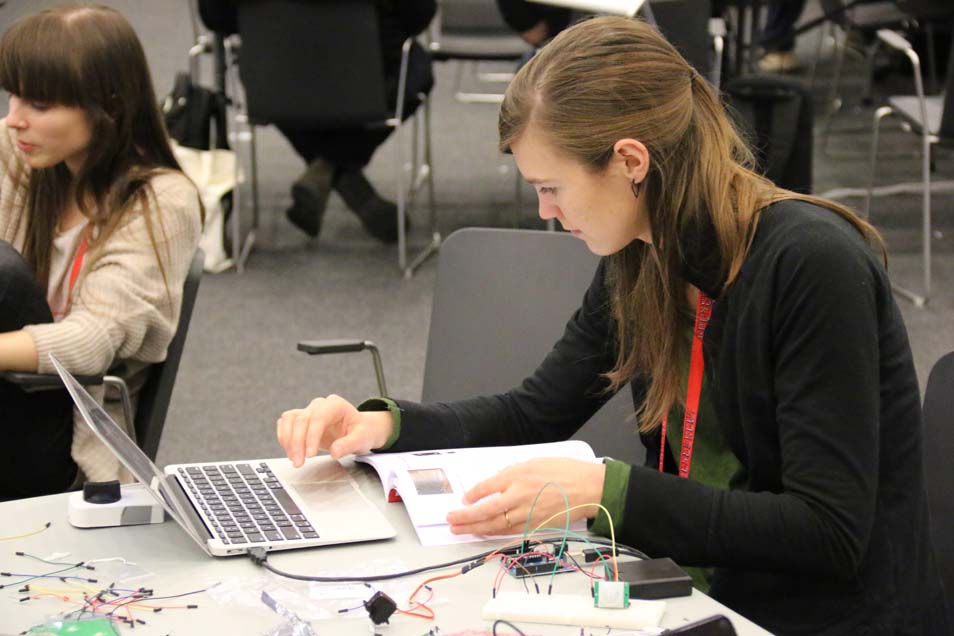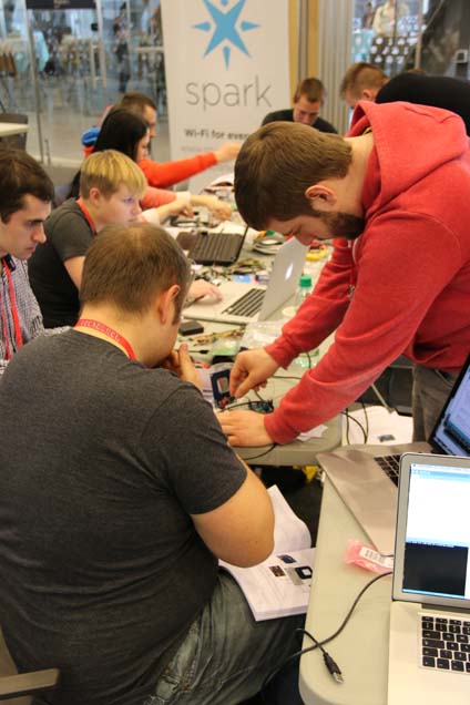 After the talks, attendees spent the afternoon moving through any of 16 asynchronous workshop sessions building everything from RFID doorlocks to underwater robots. The twitter wall projected in the main workshop area showed the excitement of attendees as they spent the afternoon learning and building.