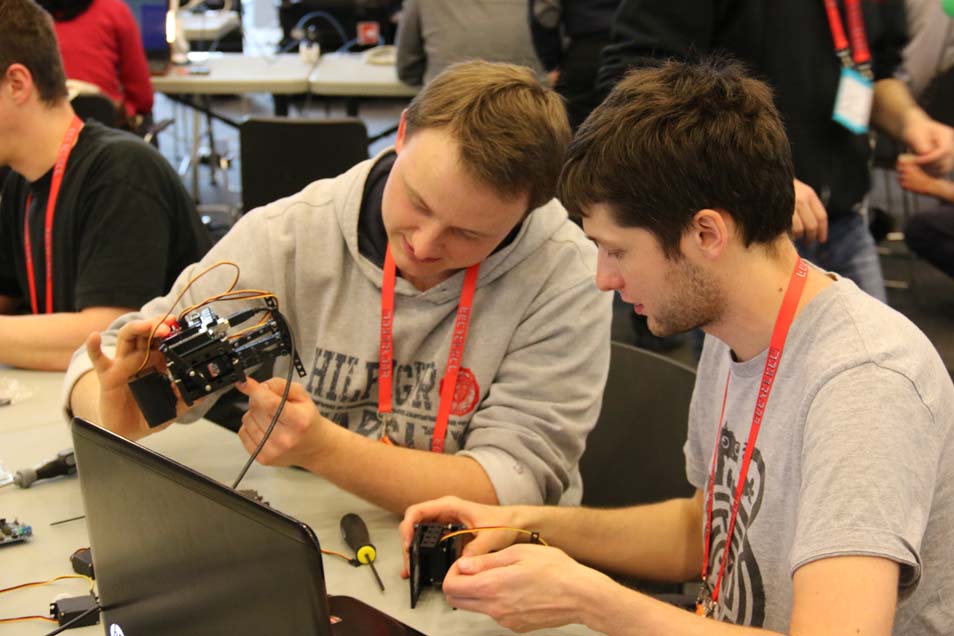 After the talks, attendees spent the afternoon moving through any of 16 asynchronous workshop sessions building everything from RFID doorlocks to underwater robots. The twitter wall projected in the main workshop area showed the excitement of attendees as they spent the afternoon learning and building.