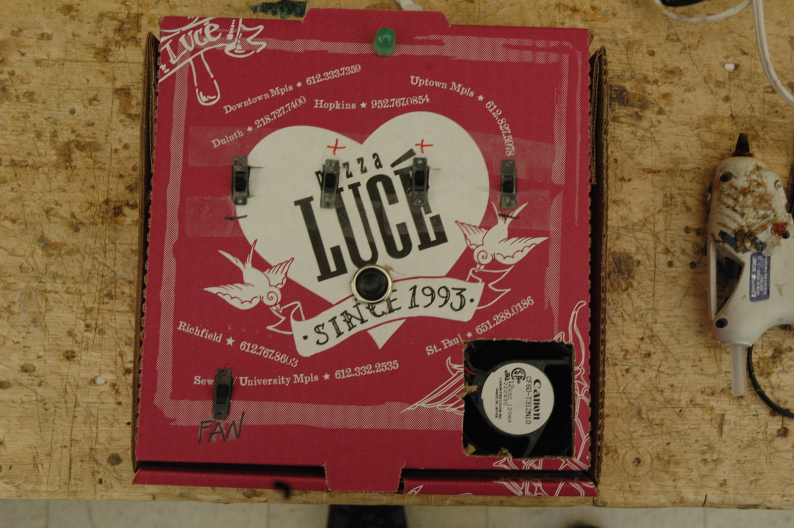 The Laser Kaliedoscope features a laser pointed at a mirror, and that reflects the laser onto another mirror, and that one reflects it onto another mirror, and then it shows up on the wall. You can make the motors spin by adjusting the speed by turning the potentiometers. There are 3 motors and by setting them all to different speeds, you can get some crazy patterns going.