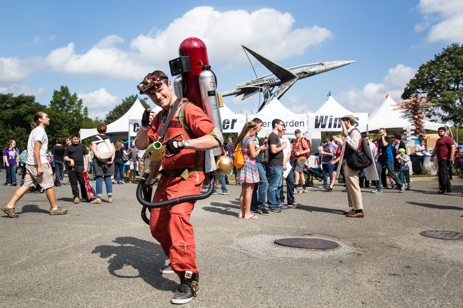 A beautiful day at World Maker Faire, at the New York Hall of Science. Neon dancers, cardboard raptors, and toy car racing: it all makes sense at a Maker Faire. Here are a few of our favorite photographs from day one!