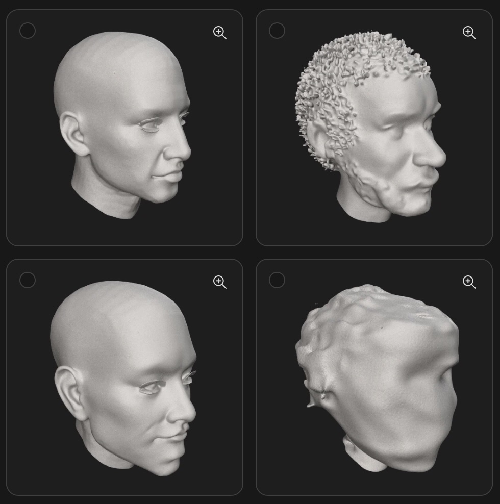 Today, Meshy asked what styles I liked and what kinds of things I wanted to generate. I picked characters and cartoon as the style. Despite that, my text prompt generated a single model of a realistic man as I requested. I didn’t ask it to make it look like me so it didn’t, but it did follow the prompt. When you zoom in, the features are a bit blurred, but if I was to 3D print this as a small action figure, I imagine it being fairly passable. The photograph bust it generated was much more photo realistic, but it definitely hits that uncanny valley feeling. It’s come a long way in just a year.