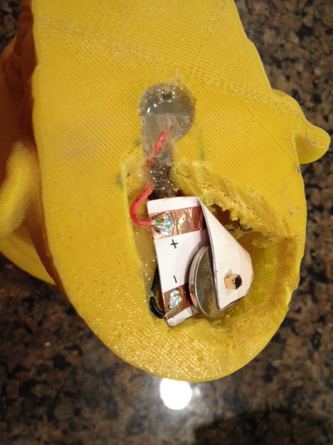 You can reserve a set for yourself by backing this project on Crowd Supply until Dec. 31, and can expect the first kits to ship in May. I was lucky enough to receive some samples from bunnie a few weeks ago, and have enjoyed playing with them immensely since then. After excitedly exhausting some of my copper tape and sticker supply on a few simple stickynote circuits, I decided to see how they would stand up to the abuse of a more complex project and on a different material—3D Printed PLA plastic. I modified a large coaster (which was formerly a failed Zombie Hunter 3D Print) to light up when an object is placed on top. I’ve included a few photos from my build in the slideshow below, but you can read more about the process and see more here.