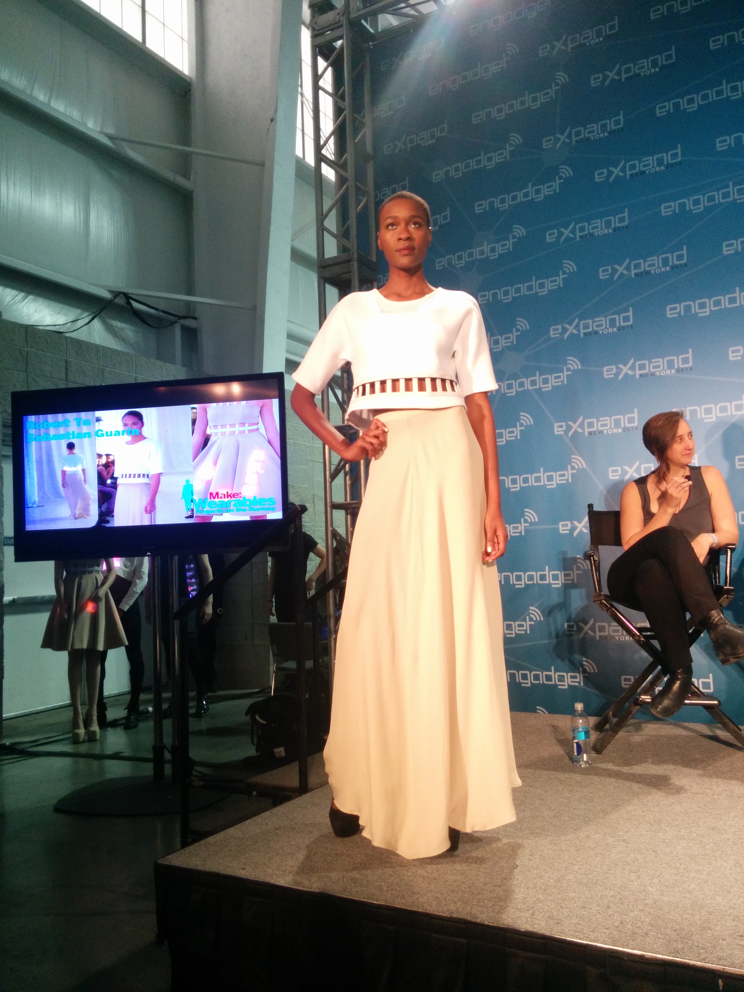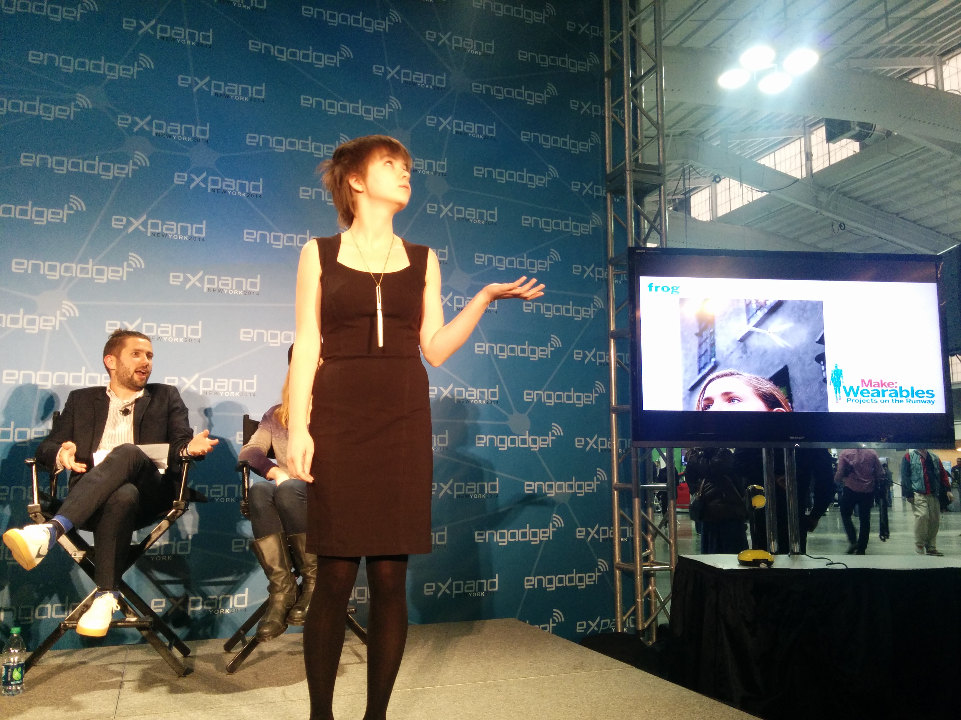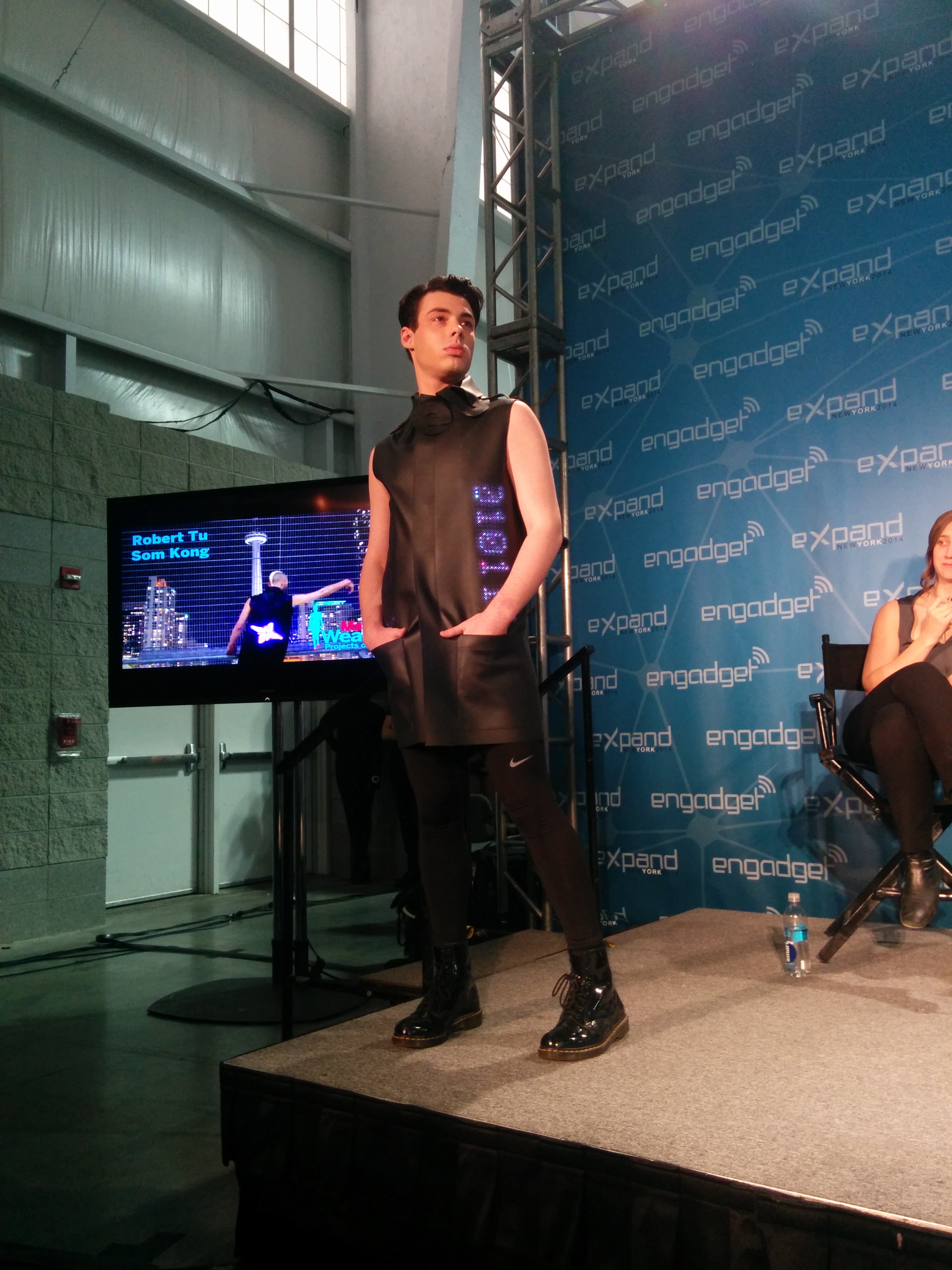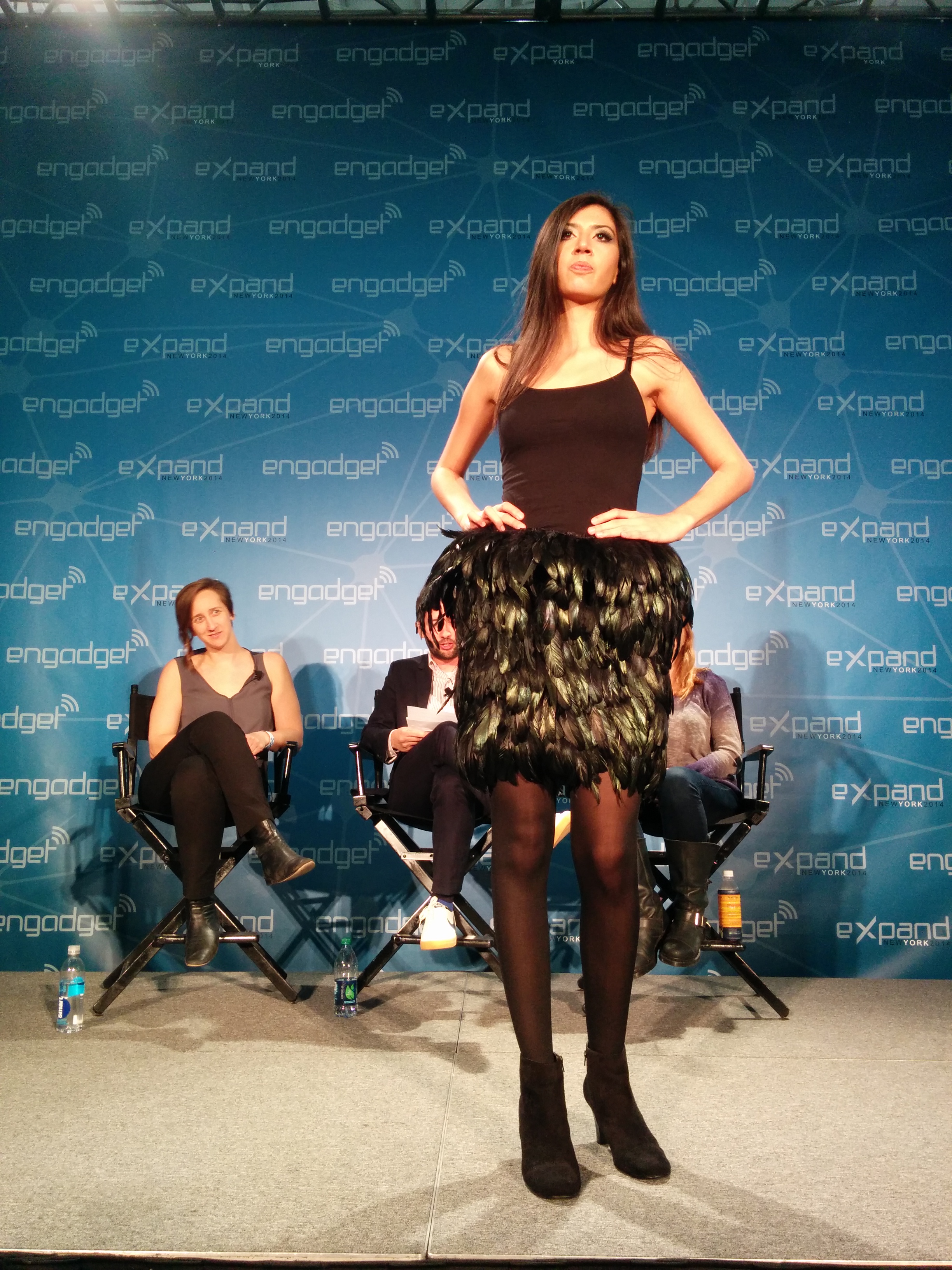 Eighteen designers descended on the Javits Center in Manhattan for Make: Wearables Projects on the Runway at Engadget Expand. The high tech and fashionable pieces they showed incorporated light, kinetics, 3D printing, data logging, data visualization, and a lot of incredible skill. With the expert guidance of OCAD’s Kate Hartman and Adafruit’s Becky Stern, Expand attendees got a small glimpse of what’s on the cutting edge of both fashion and technology. The work from these eighteen designers pushes the boundaries beyond what consumers think of when they hear the phrase “wearable technology”