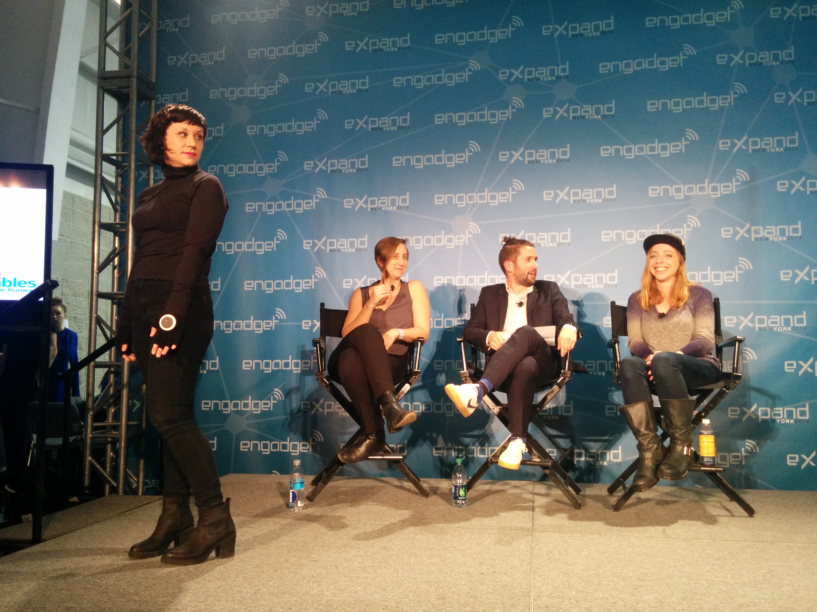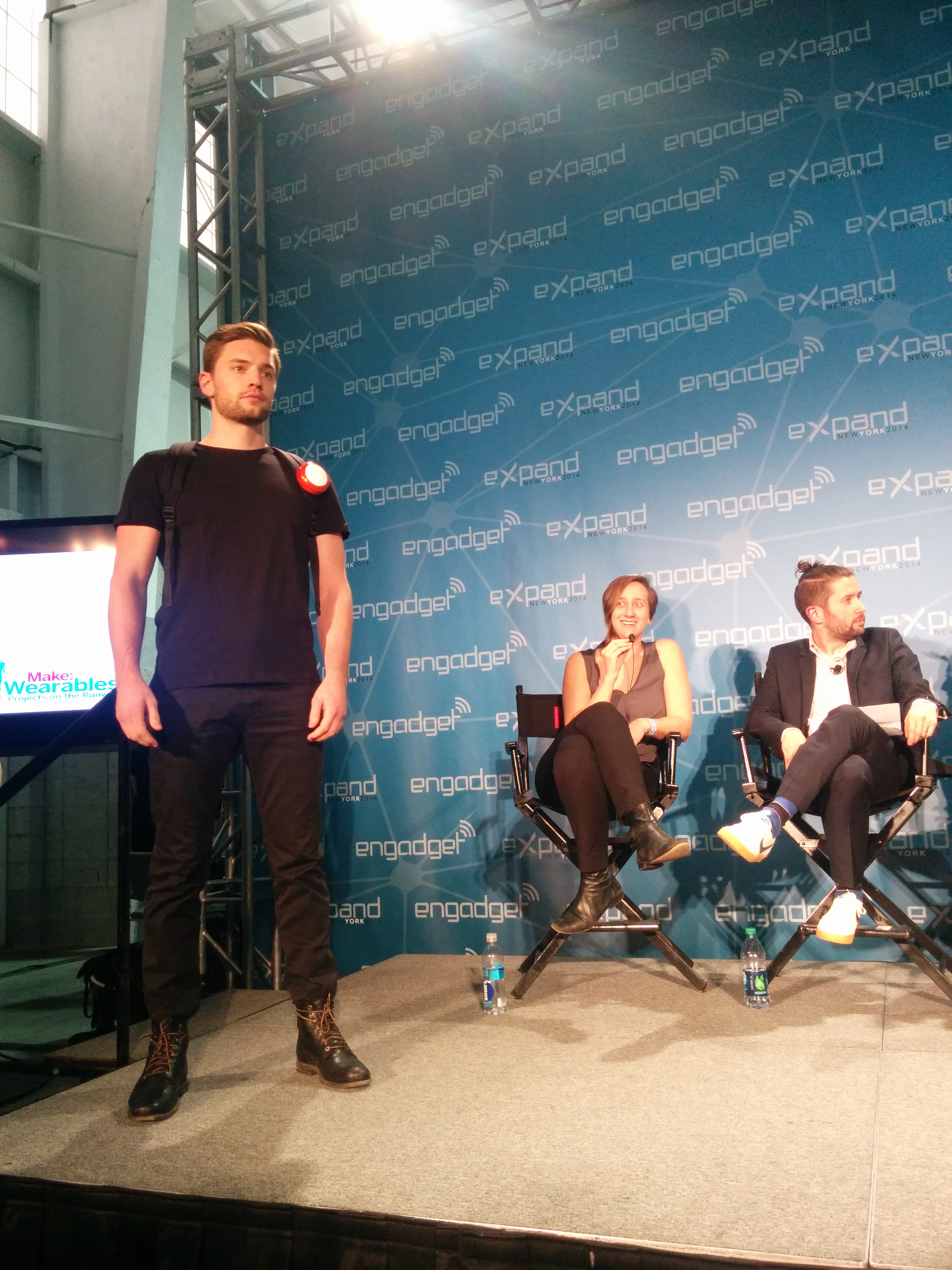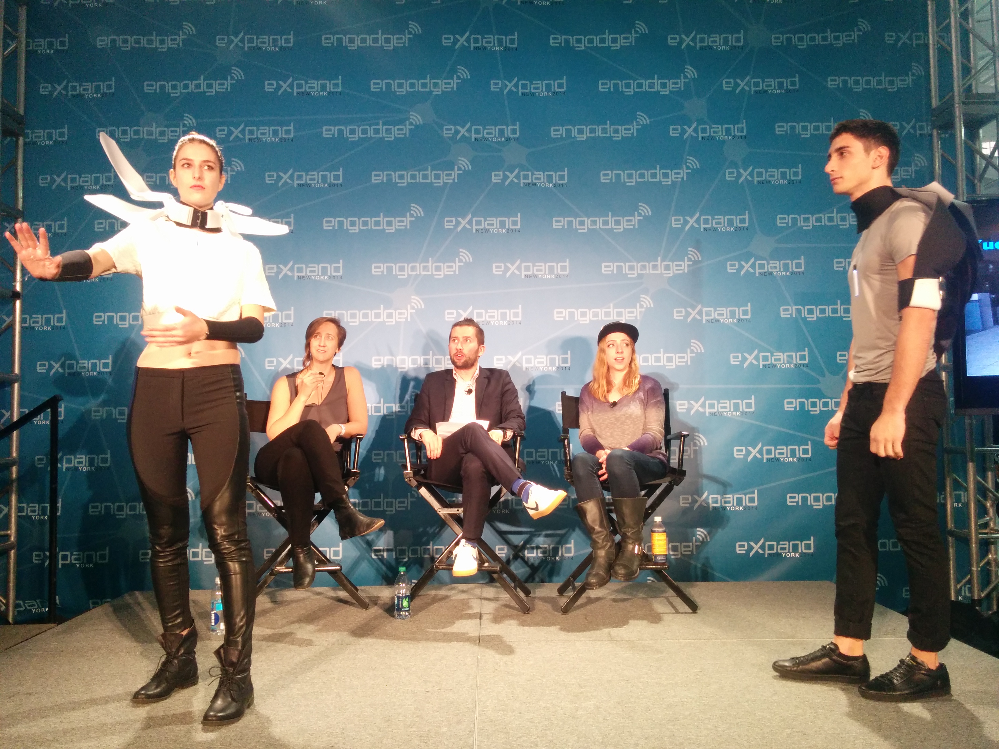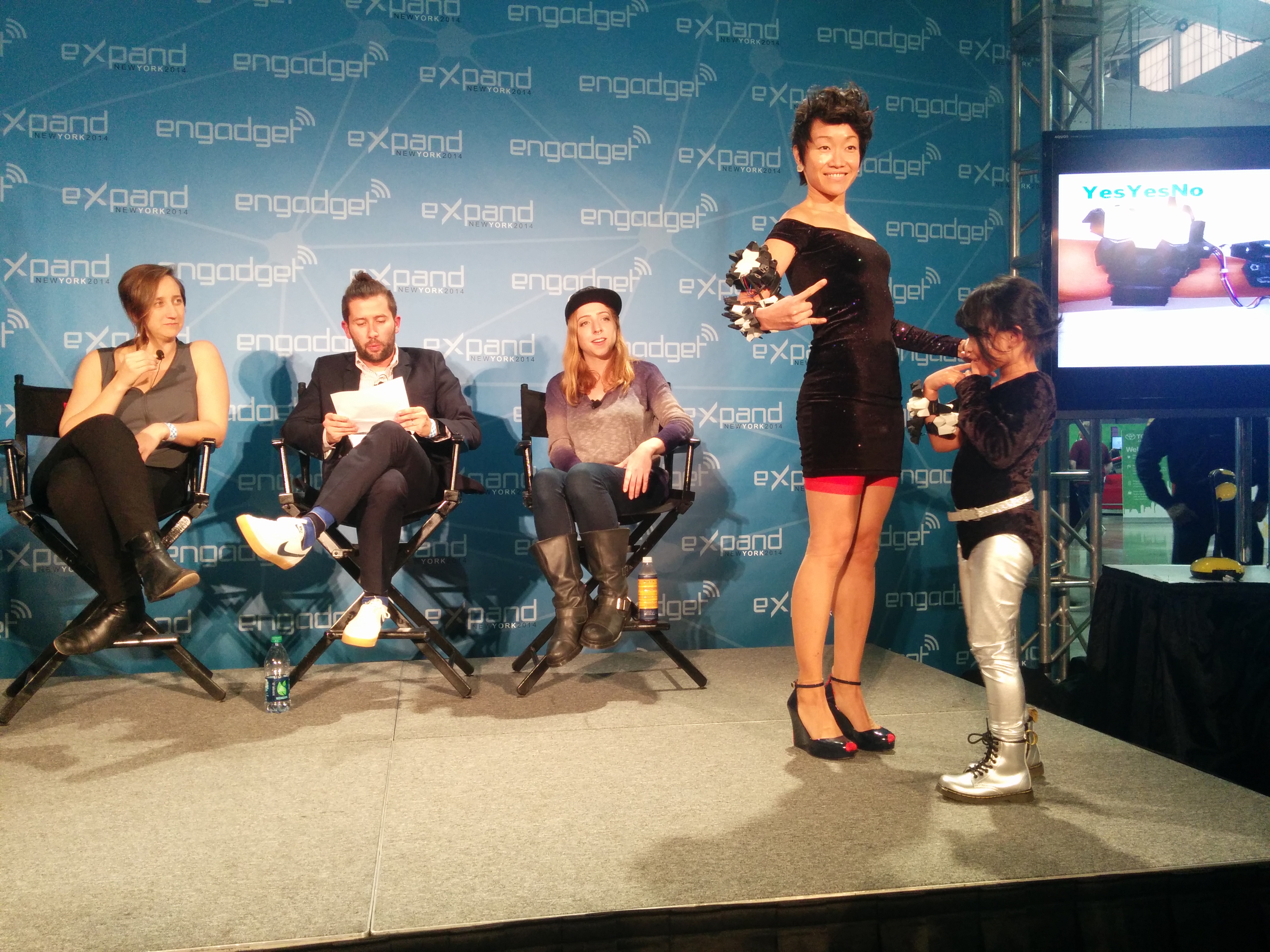 Eighteen designers descended on the Javits Center in Manhattan for Make: Wearables Projects on the Runway at Engadget Expand. The high tech and fashionable pieces they showed incorporated light, kinetics, 3D printing, data logging, data visualization, and a lot of incredible skill. With the expert guidance of OCAD’s Kate Hartman and Adafruit’s Becky Stern, Expand attendees got a small glimpse of what’s on the cutting edge of both fashion and technology. The work from these eighteen designers pushes the boundaries beyond what consumers think of when they hear the phrase “wearable technology”