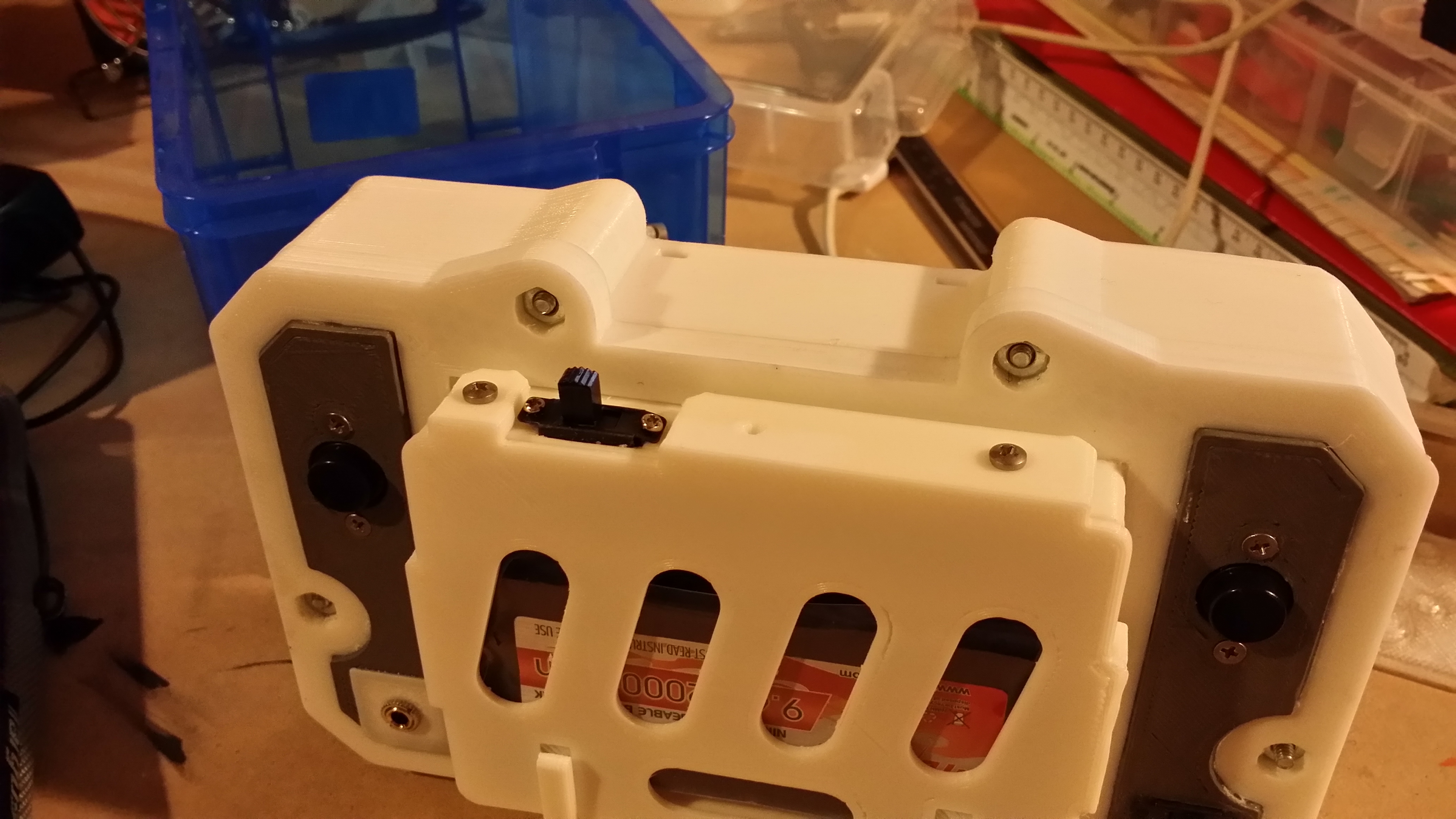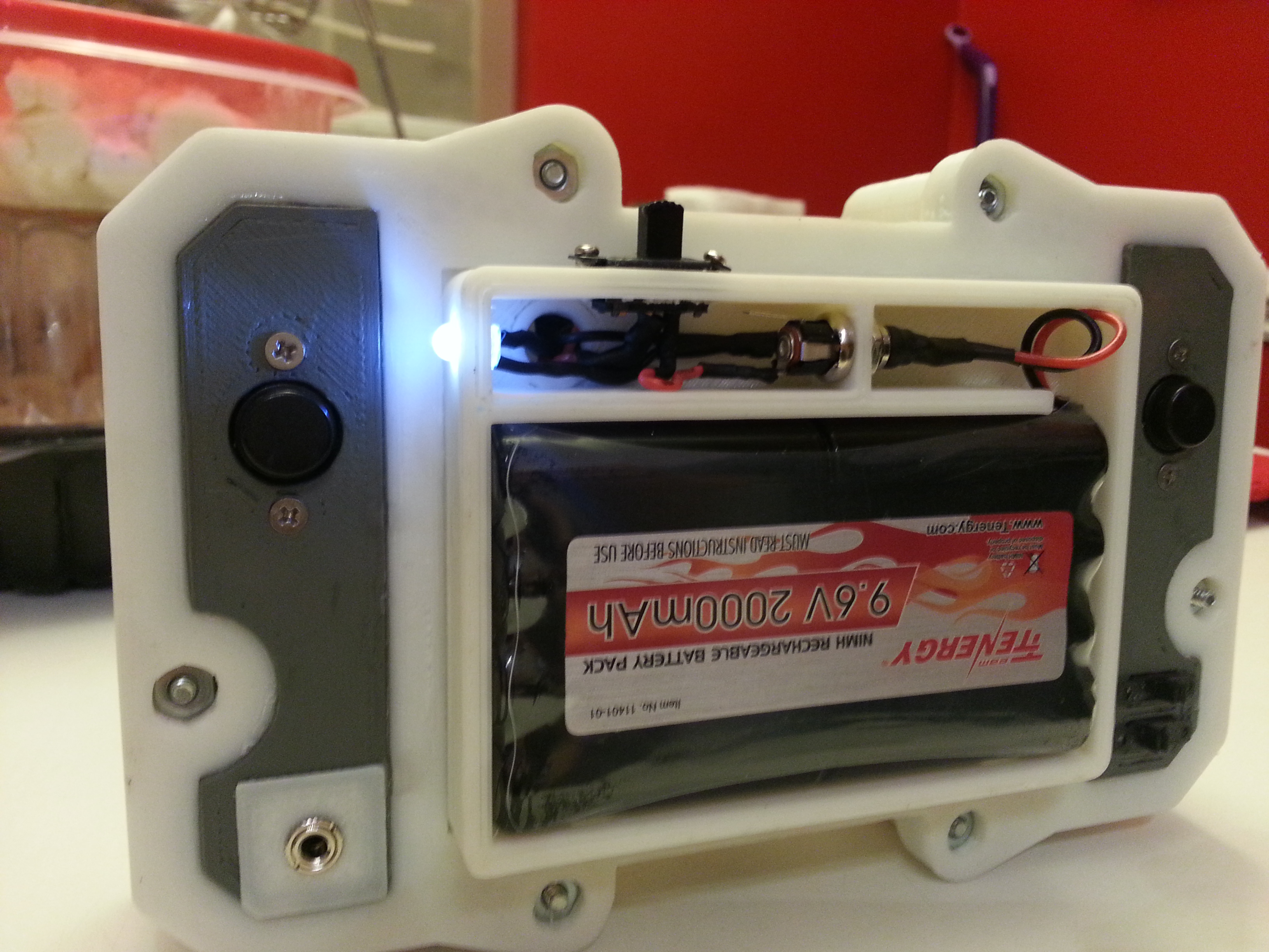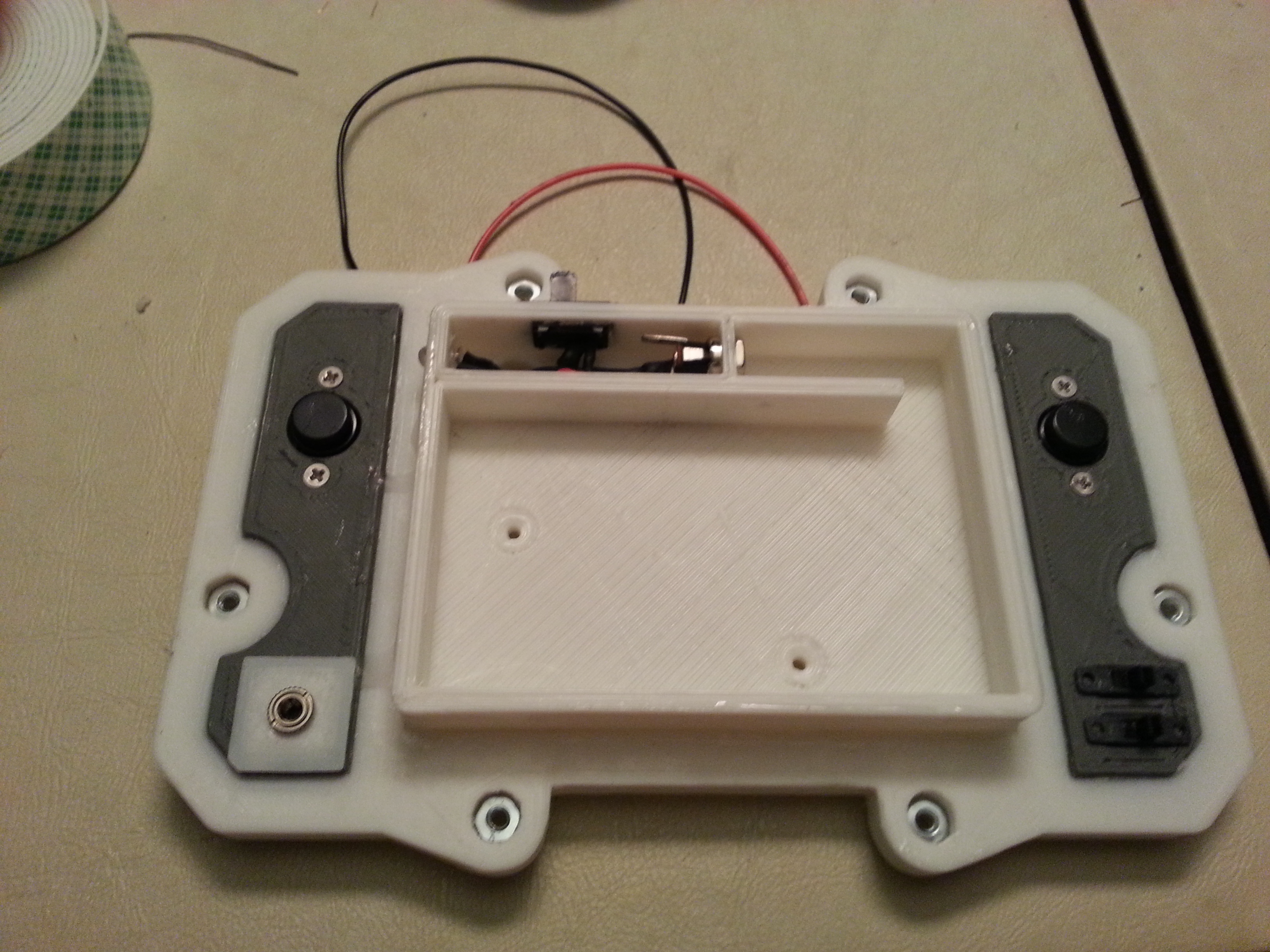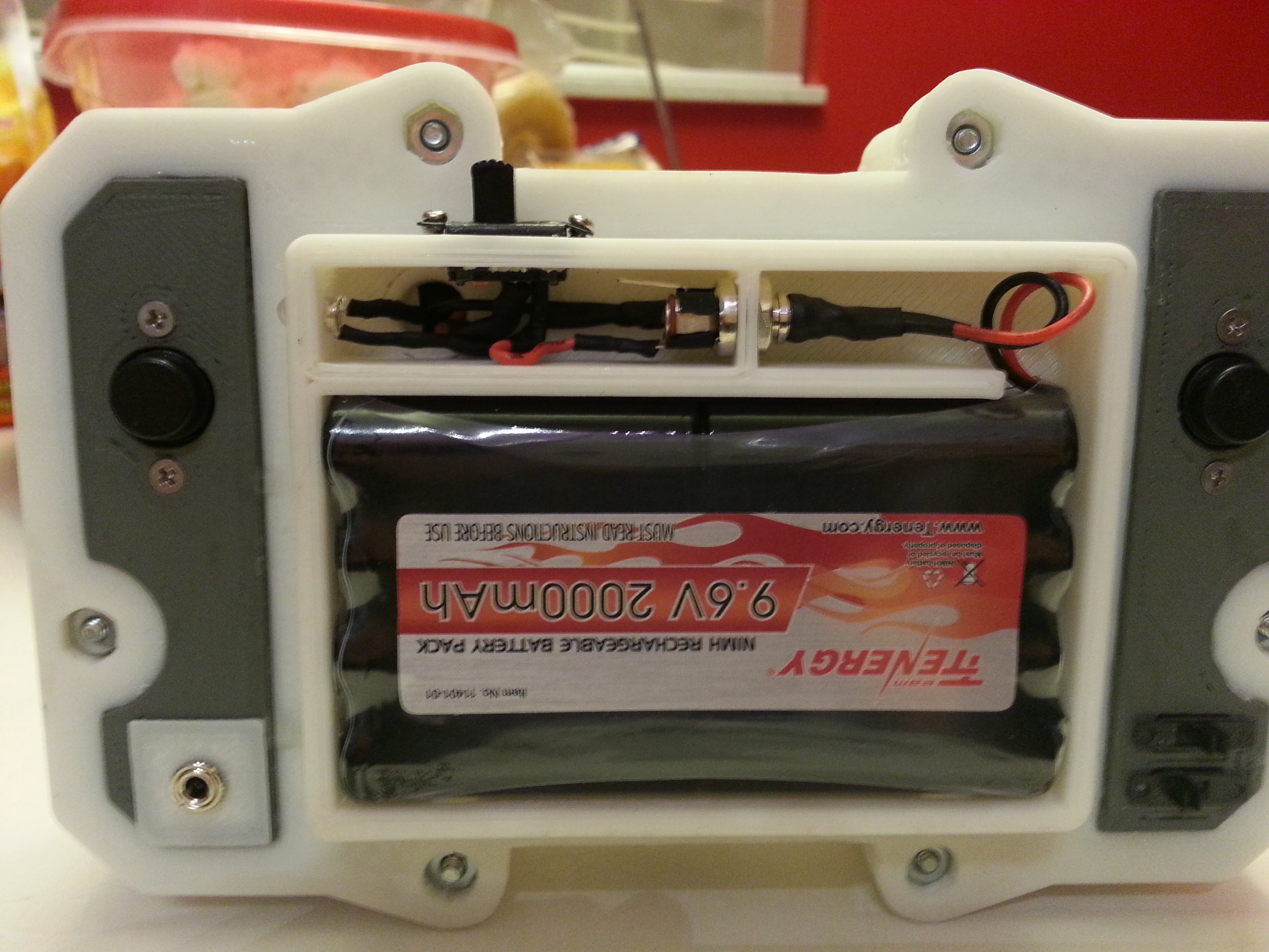 The core of the system is a 512 MB Raspberry Pi Model B. Attached to that is a Teensy 2.0, handling all the buttons and joysticks. There is a 4.5 inch LCD as well as 2 tiny speakers. The entire thing runs for roughly 2 to 3 hours on a 9.6 volt NiMh battery pack. This is all encased in a custom designed 3D printed enclosure, which Mike has shared if you’d like to print your own. Mike says that all together he spent about 20 hours printing out the various pieces.