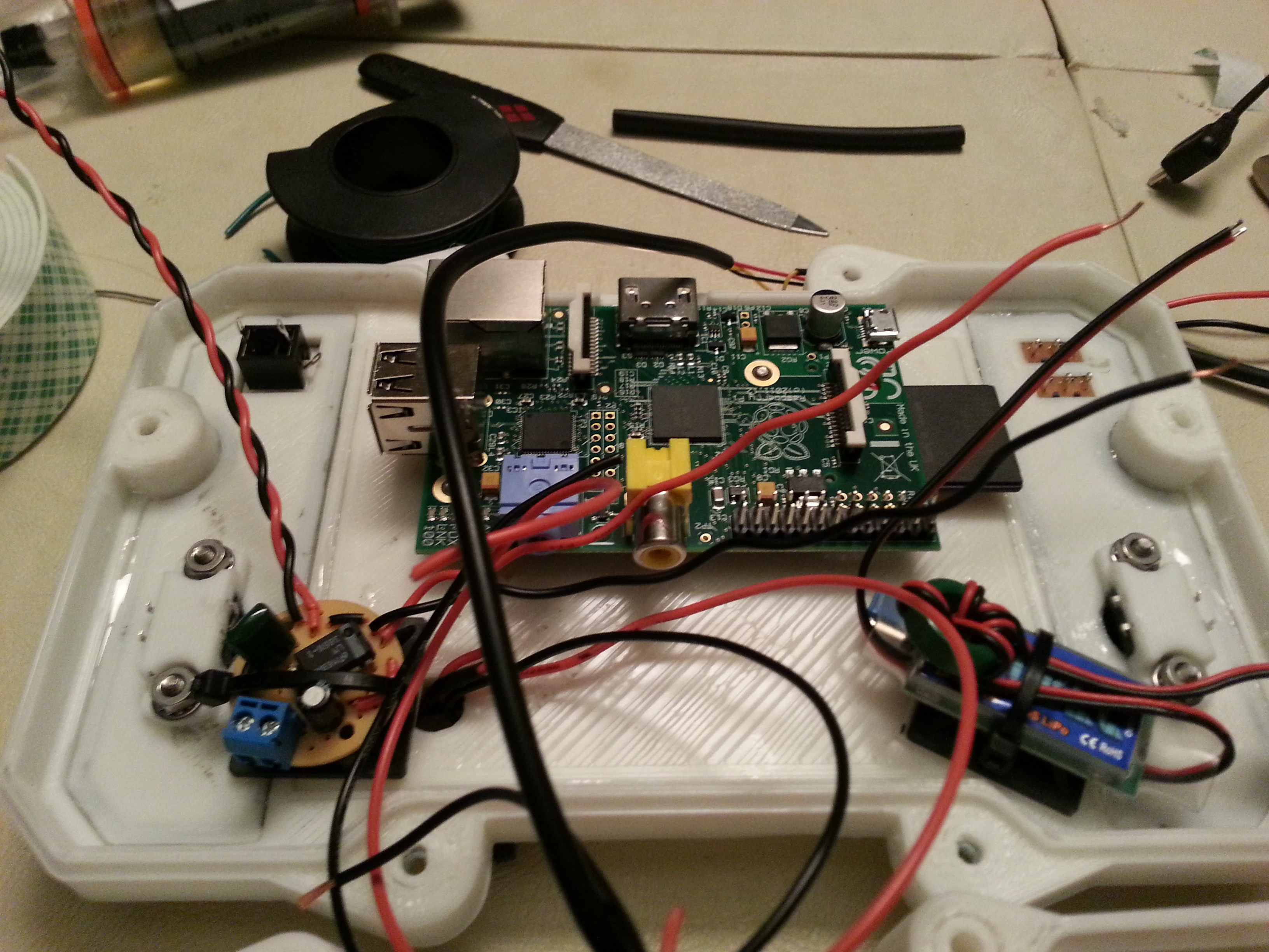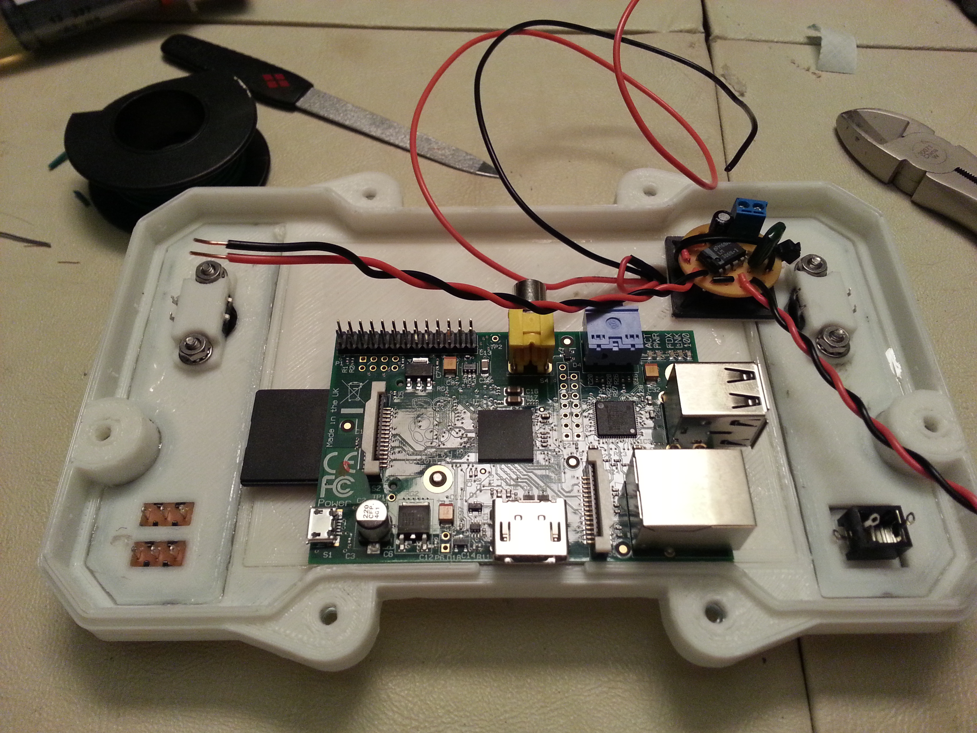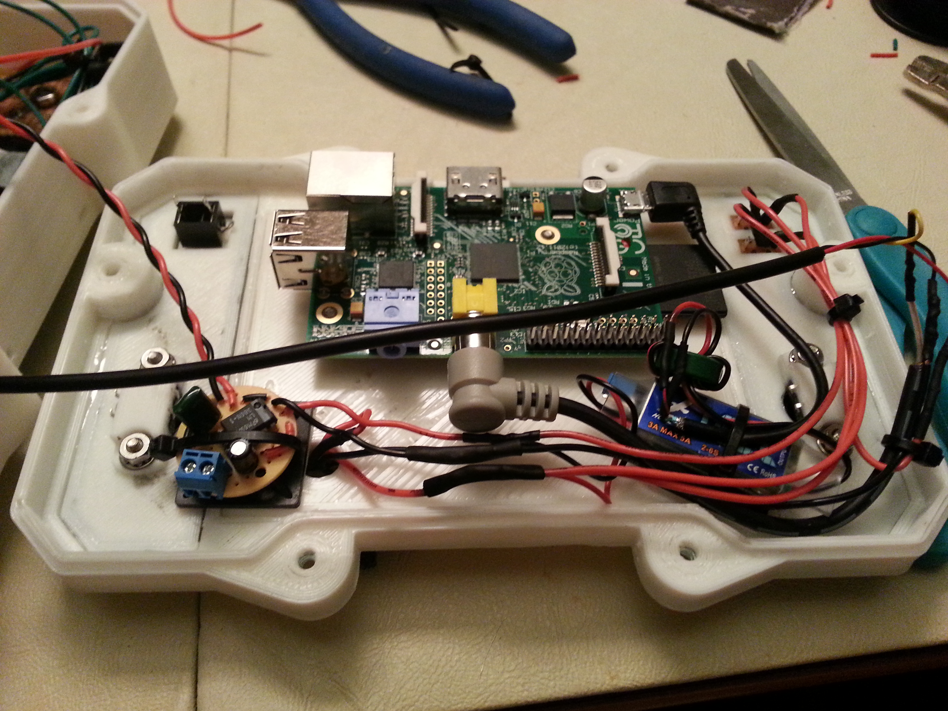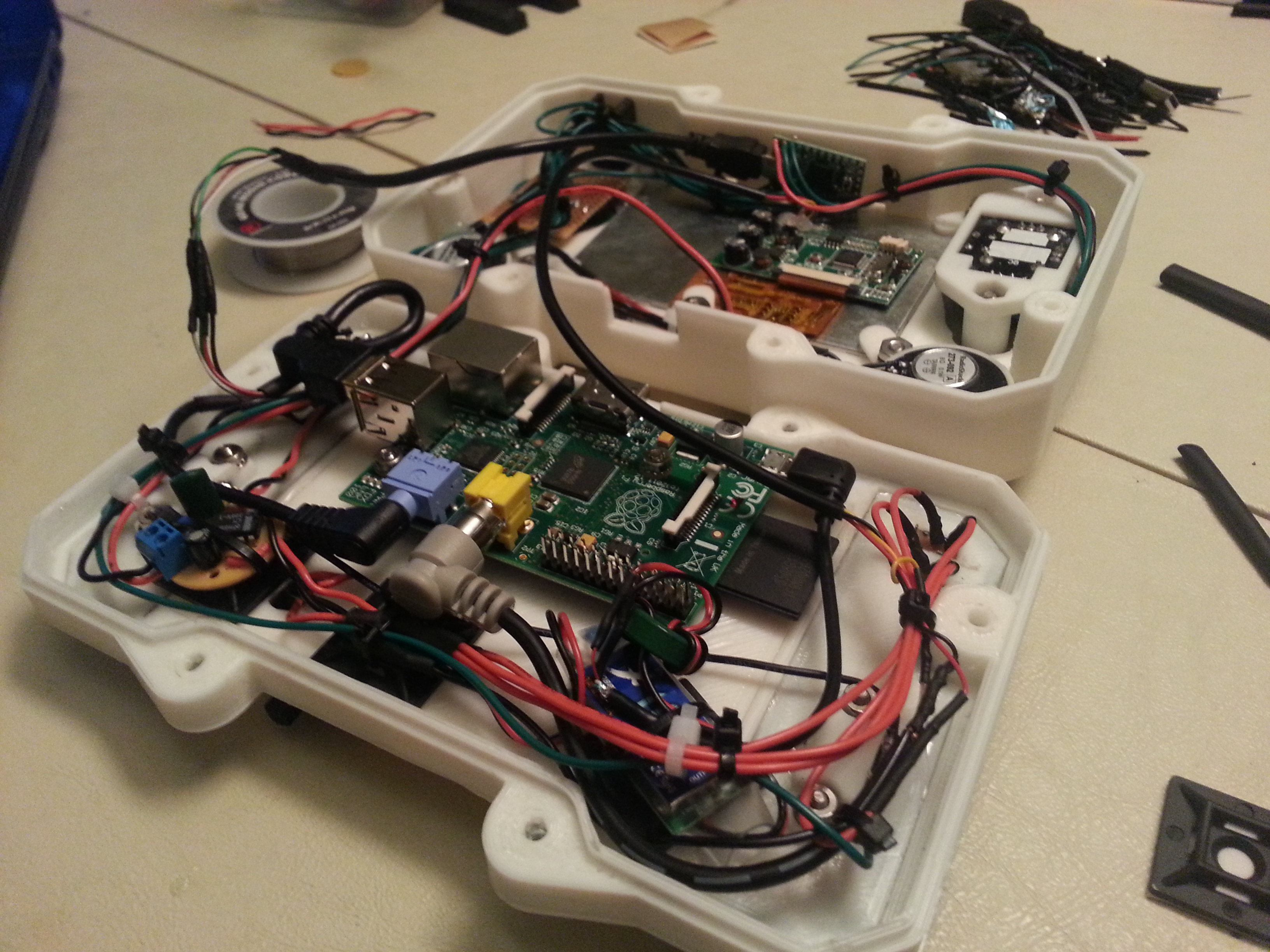- Solder all connections directly to the Raspberry Pi and remove the now unnecessary connectors. This would allow him to reduce the size of the whole unit.