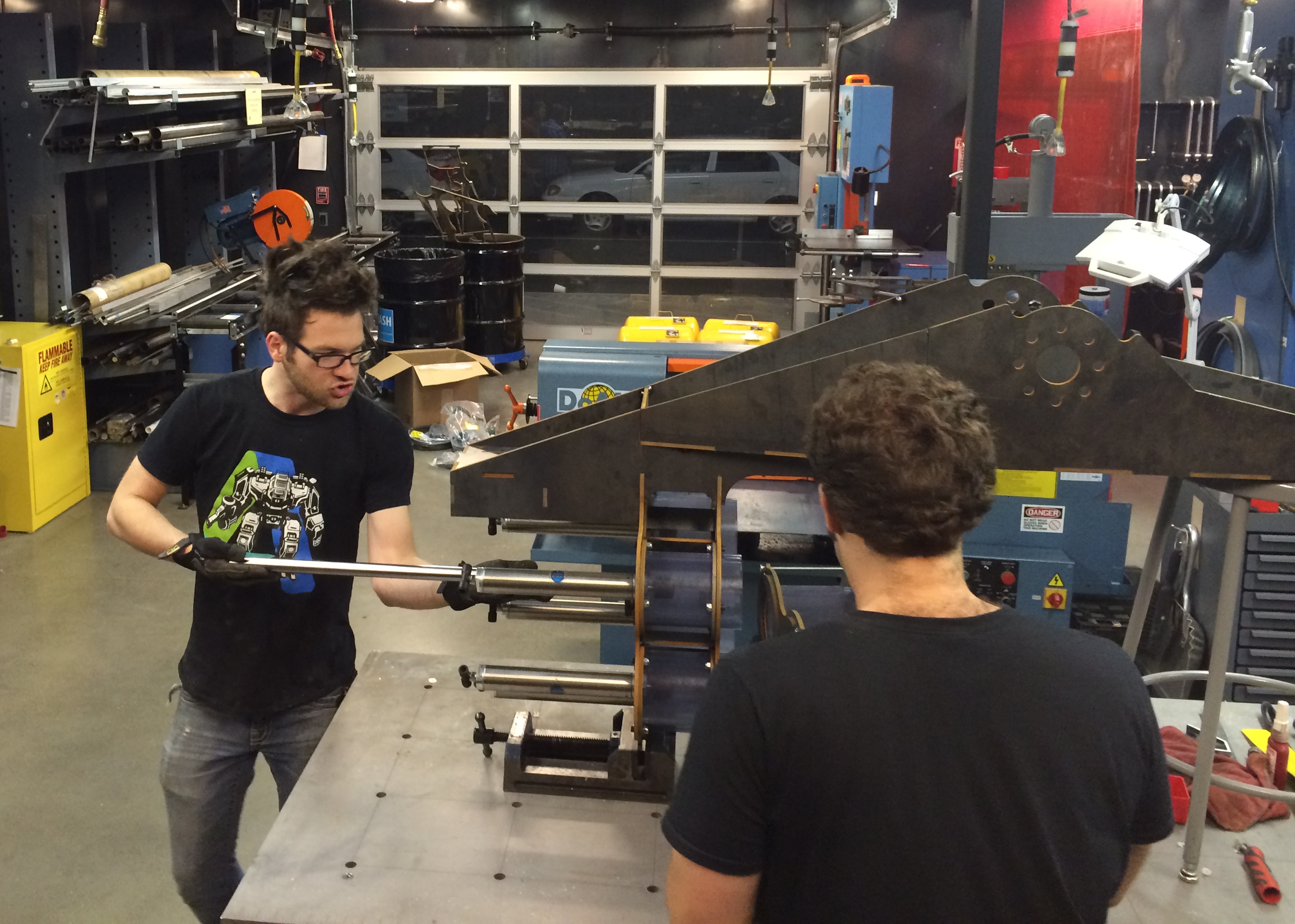 Now Cavalcanti and his cofounder Matt Oehrlein, along with a team of designers, fabricators, and more, have been working both at Autodesk Pier 9, that pinnacle of corporate Makerspace, Oakland’s American Steel, where the 10-ton crane means he can actually move the 12,000-pound behemoth, and other locations.