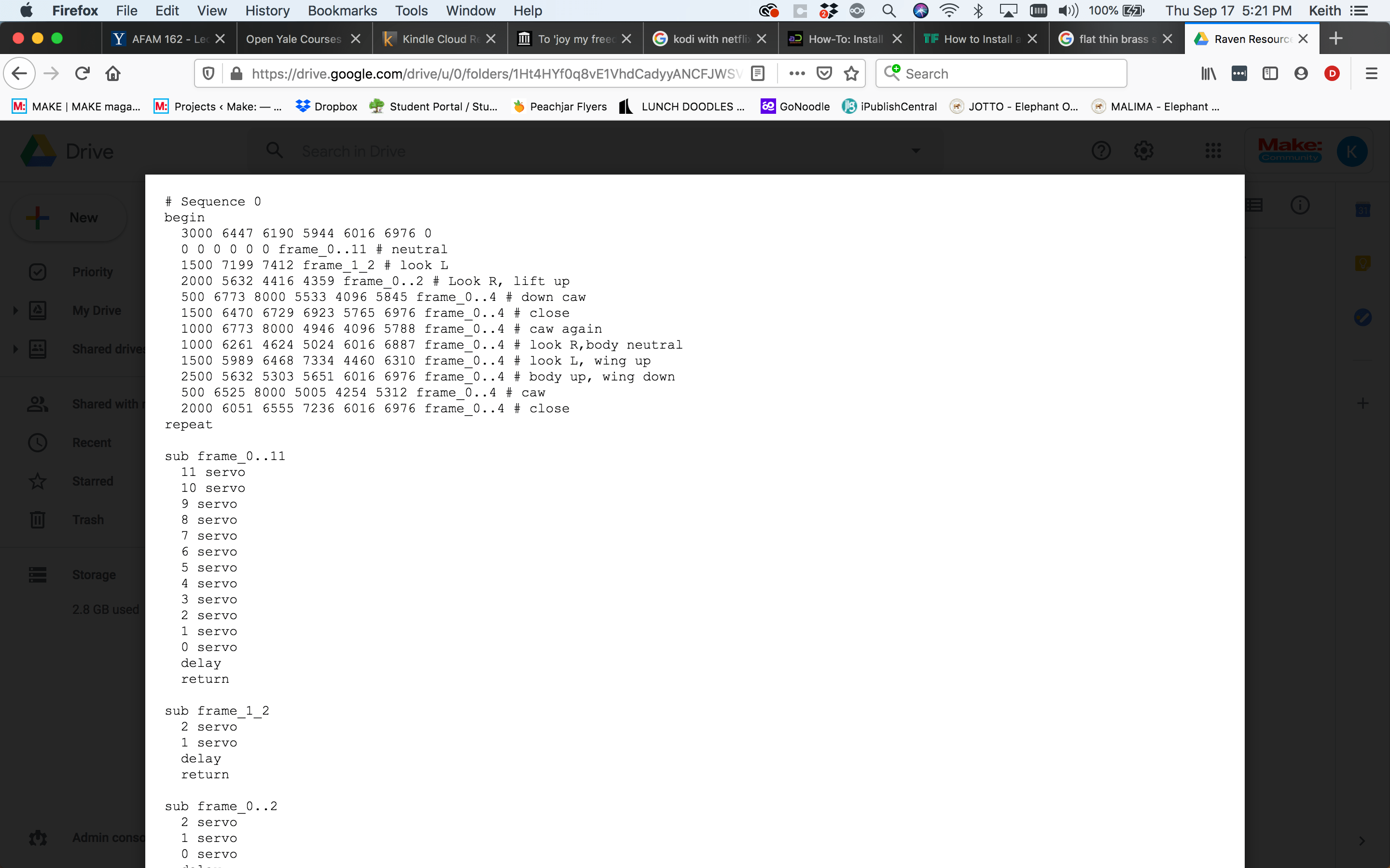 The Mini Maestro turns out to be a super capable little servo driver, thanks in part to Pololuโs config/control software Maestro Control Center (Windows and Linux, but doesnโt work on Raspberry Pi). It lets you code motion sequences, tweak servo speed and acceleration for smooth movements, and flash your routines to the chip via USB. Then you can initiate your routines from whatever triggers or microcontrollers you want to use. Jasper provides a sample Maestro routine of some realistic raven moves, but of course you can create your own animations and add sound, voice, lights, or whatever else you want to trigger from your own board (yes thereโs an Arduino library).