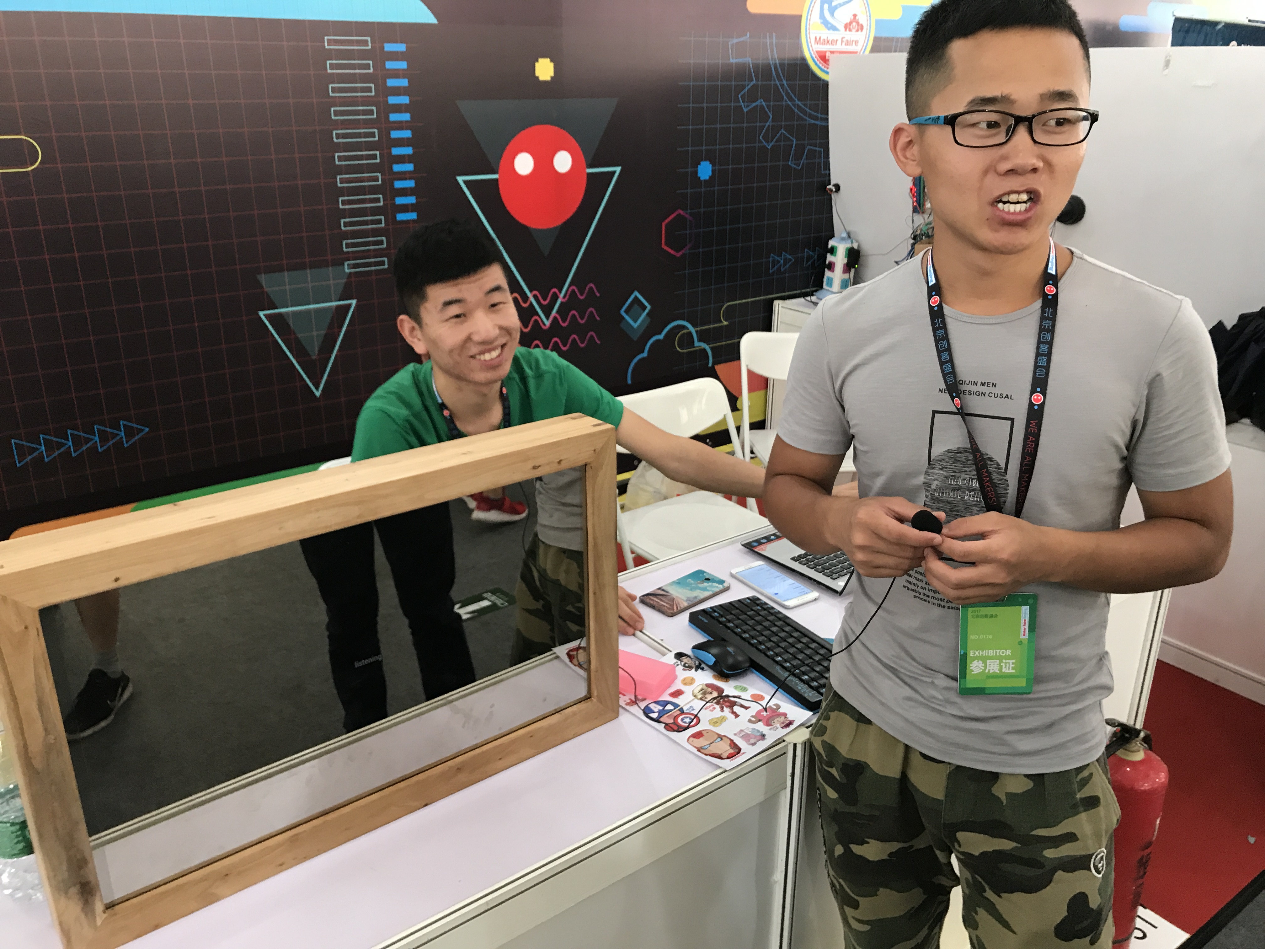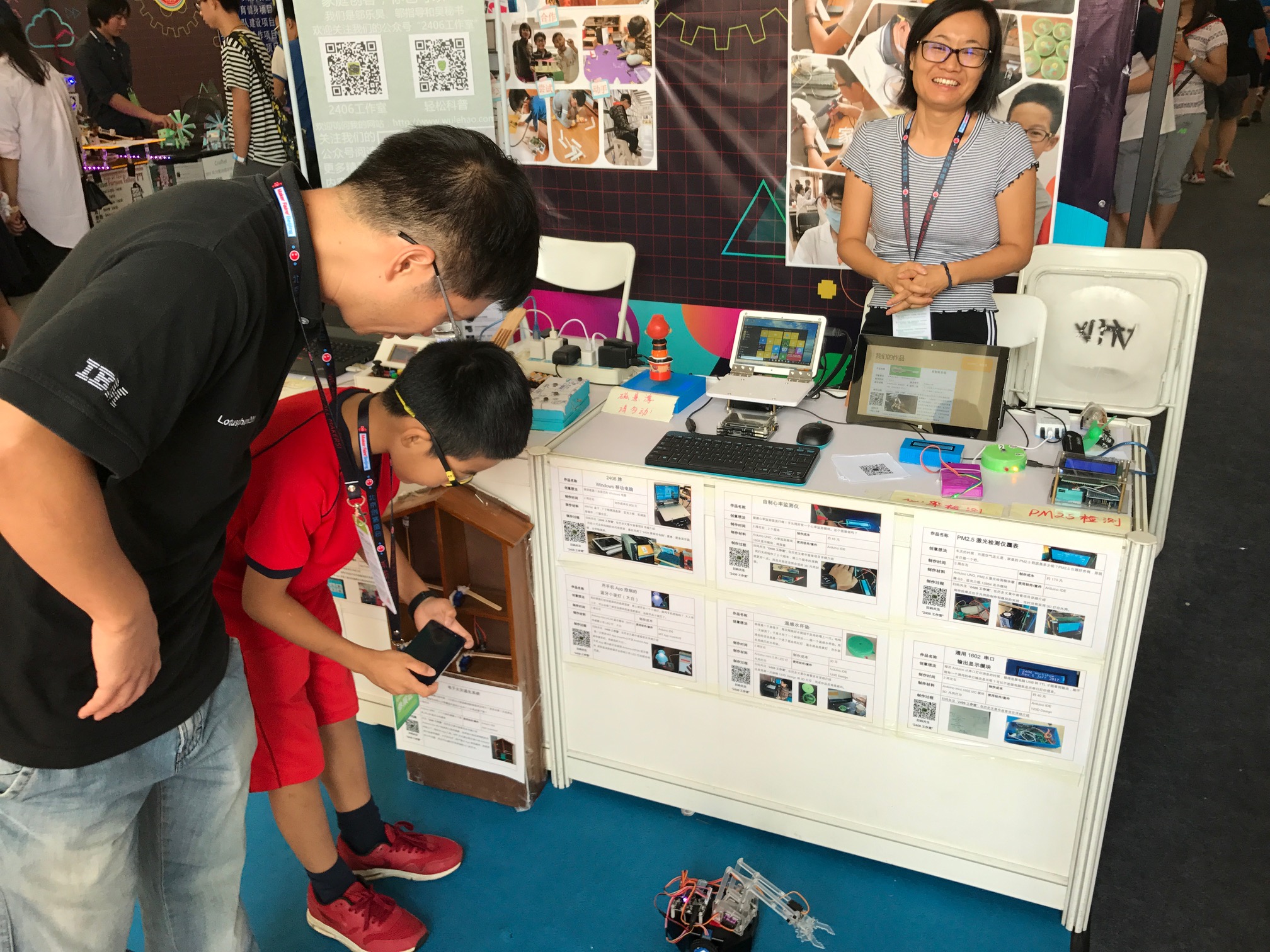 This fantastic “maker family”—Jeff, Ray, and Elena Wu—showed projects they have been working on together (following the lead of Ray, the son) over the past few years. The gesture-controlled robot was especially compelling.