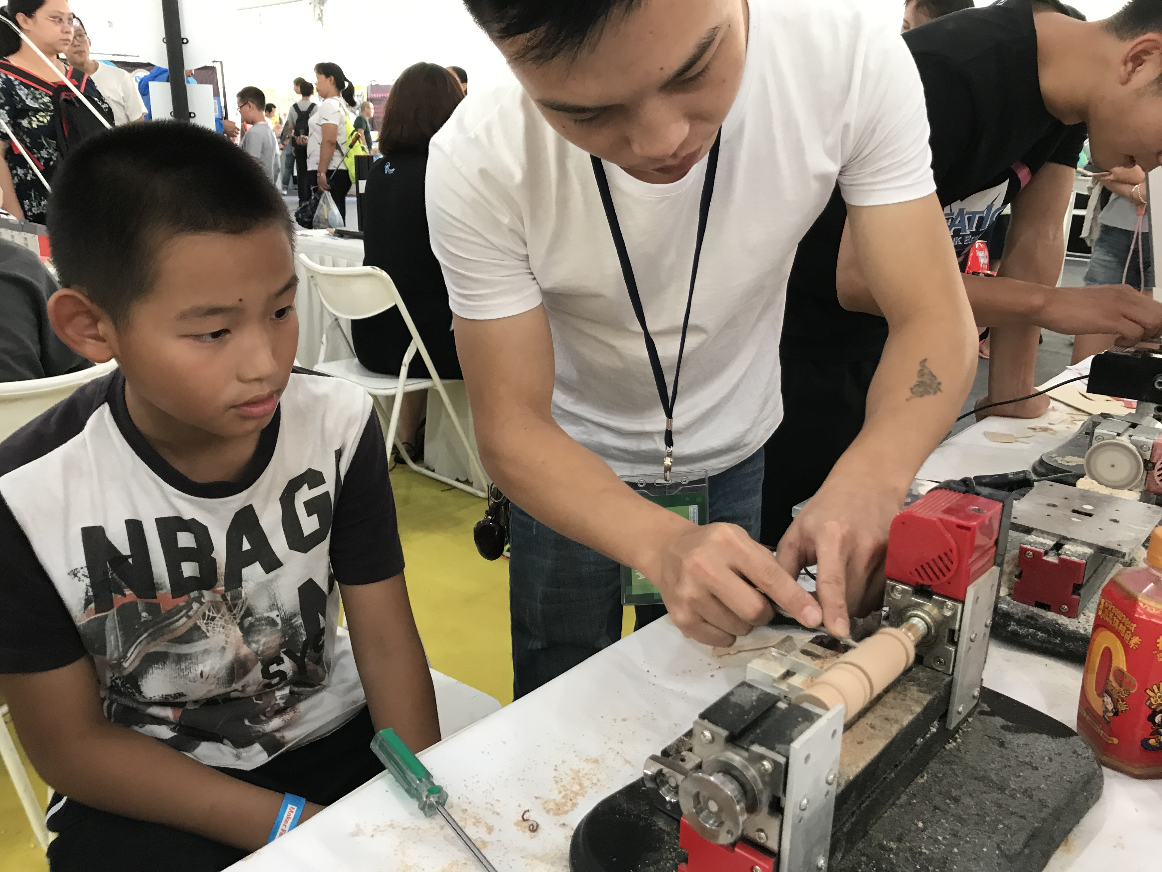 There were TWO booths showcasing a range of machine tools (lathes, milling machines, bandsaws etc) that were sized down for apartment-scale making: