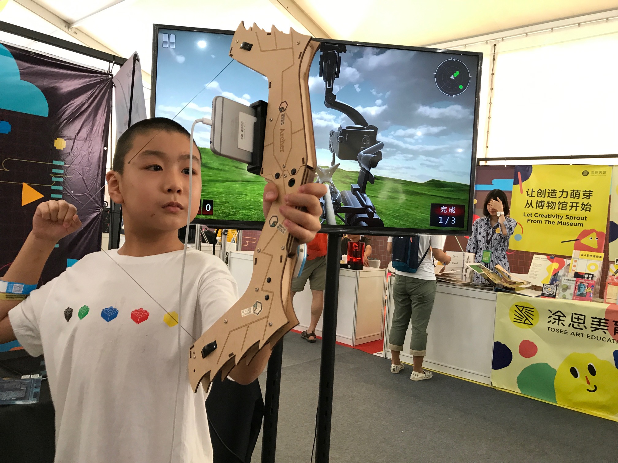 The third annual Maker Faire Beijing took place this past weekend in central Beijing, right next door to the Military Museum of the Chinese People’s Revolution and catty-corner to one outpost of China Central Television (CCTV). Around 150 exhibits in three large tents sidled-up around the backside of the Chinese Millenial Monument, a sundial-topped building that housed additional exhibits as well as an auditorium for the presentation program.