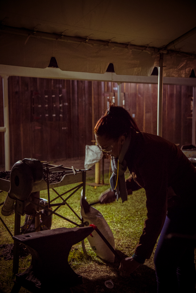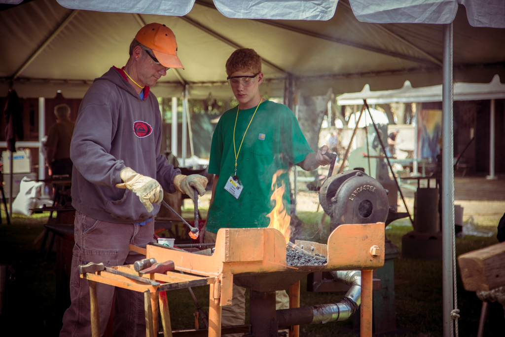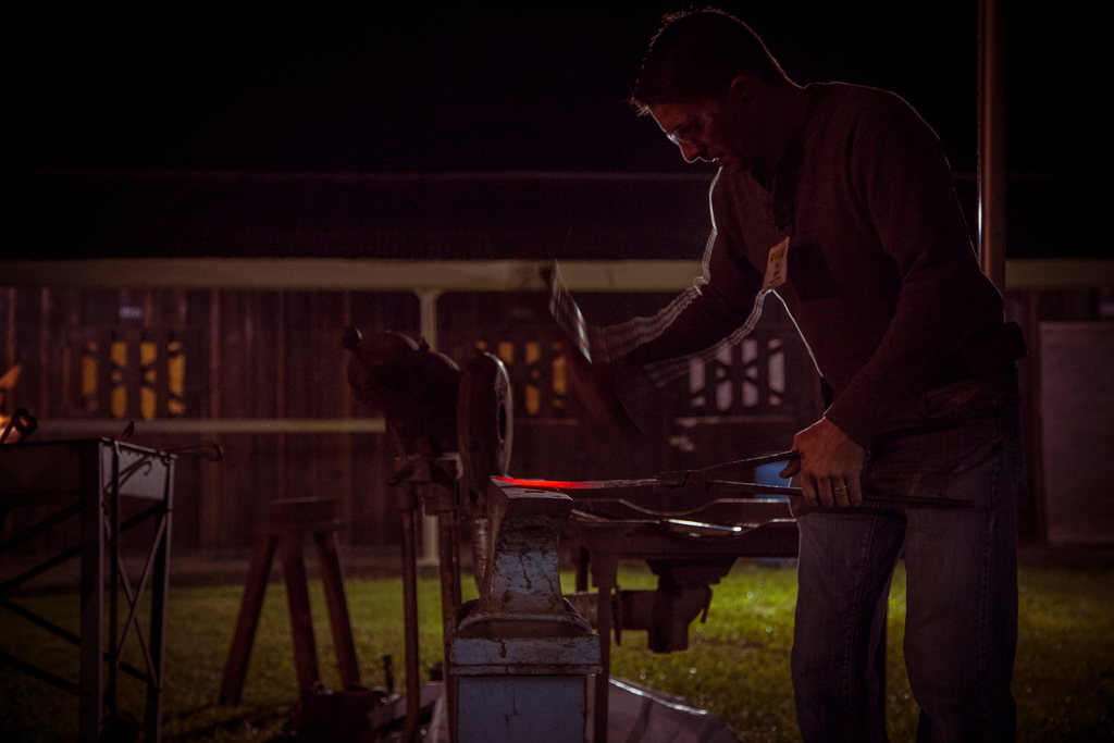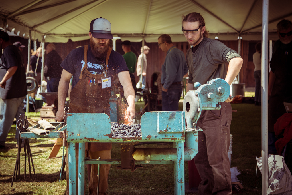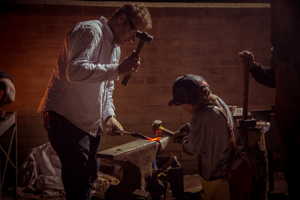 Daily hands-on workshops were led by ABANA‘s (The Artist-Blacksmith’s Association of North America) top instructors while workshops were held on topics such as power hammer repair and retrofitting, crafting flat jaw tongs, best forge practices, forge welding, and a myriad of techniques for becoming a more skillful blacksmith. After dinner each evening the workshop area, equipped with several forges, anvils, vices, and fuel, was available for Open Forge time which lasted until well after midnight.