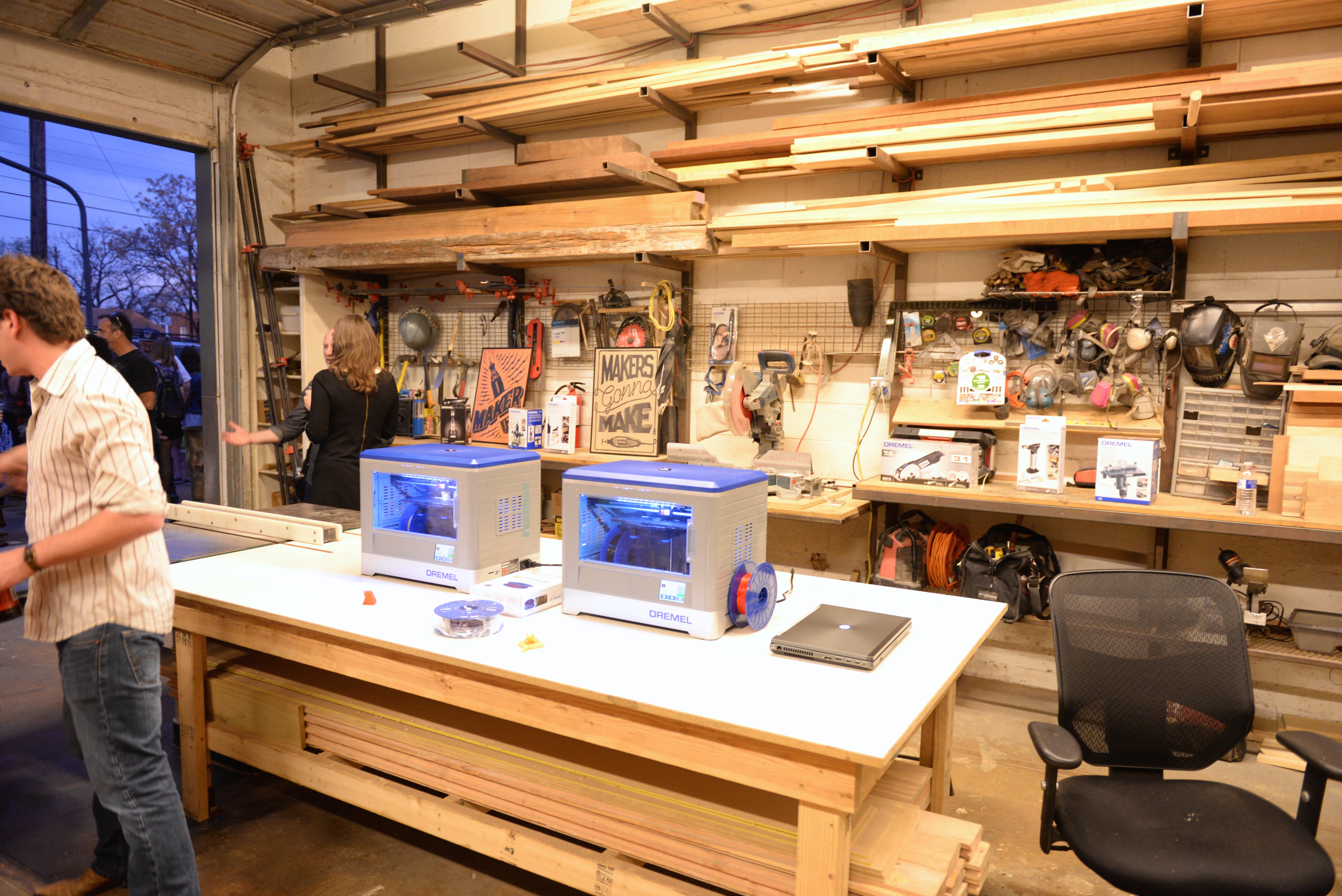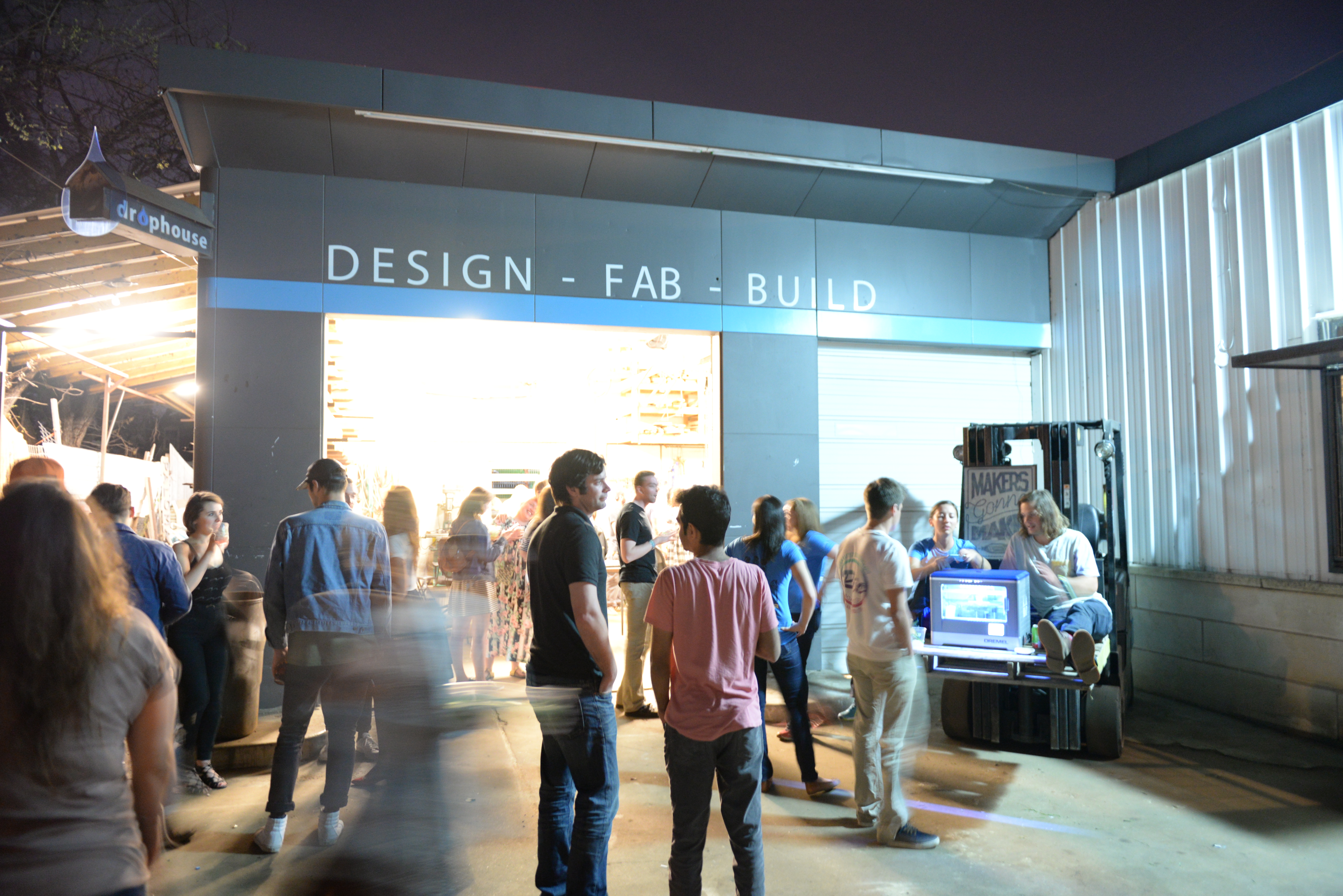 The Dremel party continued into the evenings as well. On Saturday night, the group hosted a fundraiser party at the Drophouse Design Studio, bringing pieces from numerous artists (including Jimmy DiResta’s “Spike’s Cat House”) as auction prizes, with the proceeds going to the Austin Tinkering School. The industrial location provided the perfect backdrop to talk about tools and projects and all things SXSW for the evening.