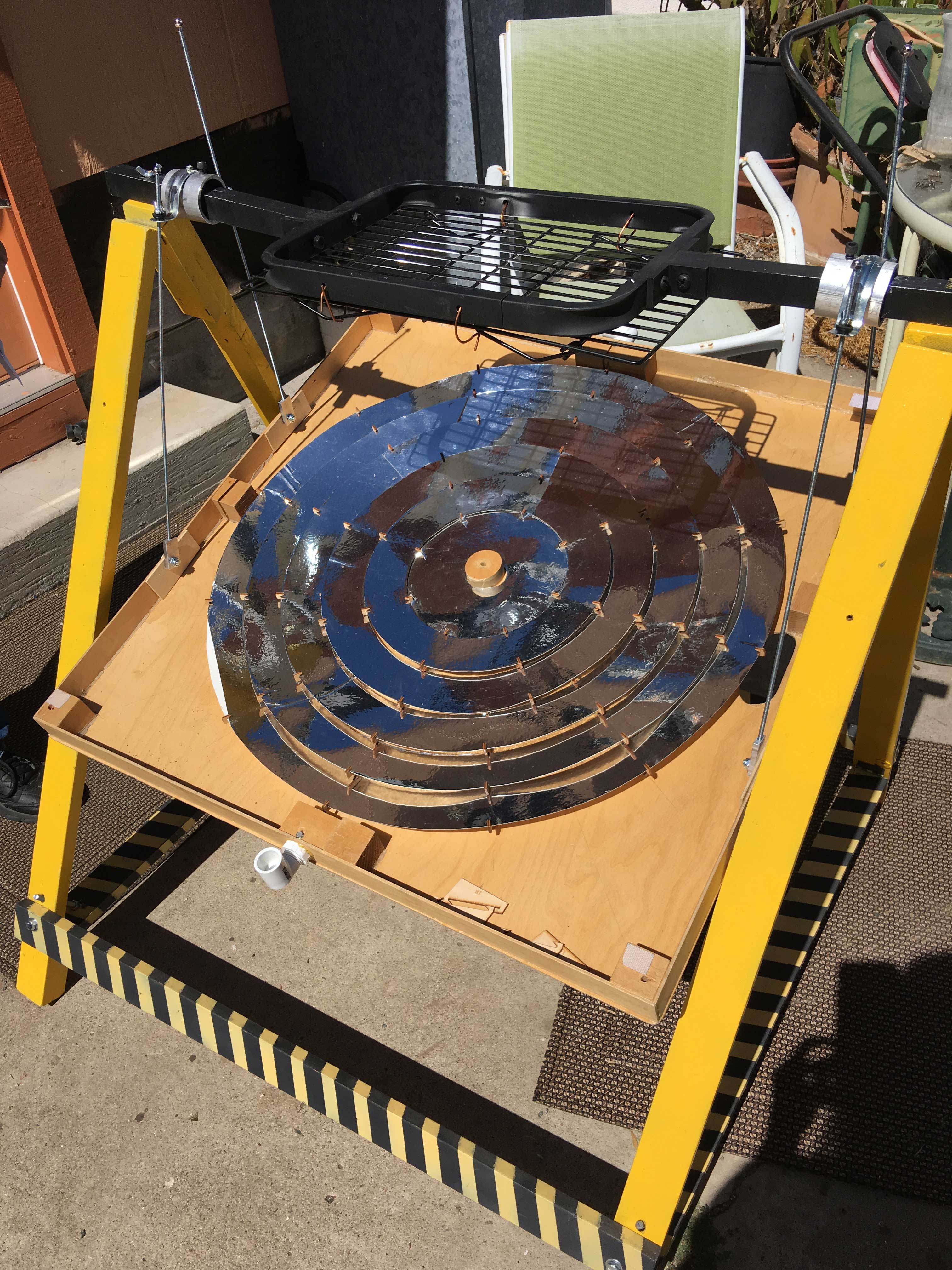 She collaborated with the San Diego Rotary, San Diego students, and other partners to create a low-cost model, the Haines Solar Cooker, that serves the refugee population. She mentioned the importance of the specific design in ensuring the project’s success. Specifically, a change from diagonal to straight line design. The way the ridges are arranged makes the difference in how heat is generated. Notice the difference in design between the Haines design below and the Copenhagen design above.