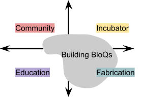 Above is a scheme Gareth Owen Lloyd from Machines Room in London showed me, for how he categorizes different makerspaces. He lamented that many people still think all makerspaces are the same, even though investing even a little time in different spaces will convince most otherwise. It’s true you can plot most makerspaces on this coordinate system, but there’s a ton of other diversity that it doesn’t take into account, like whether a space is run by its users or is staffed, or what kind of stuff people make there (software, hardware, metal or wood-working, textiles, cooking or whatever). There’s too much diversity to adequately express in a simple graphic— or in the current vernacular we have.