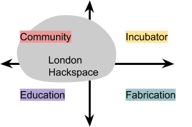 This definition might be the accepted one. But in my experience, hackerspaces and makerspaces aren’t the same thing. For starters, spaces that call themselves makerspaces are more focused on physical objects and hardware, while hackspaces are more focused on digital work and software. That’s one of many confusions that have led to many spaces avoiding this language and creating their own, eg. many of London’s “Open Workshops.”