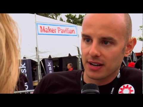Andy Taylor, a member of TechShop, demonstrates the Teeter-Totter of Doom at World Maker Faire 2011. This over-sized people powered totter incorporates a micro-controller to capture the heightened expressions of the riders.
