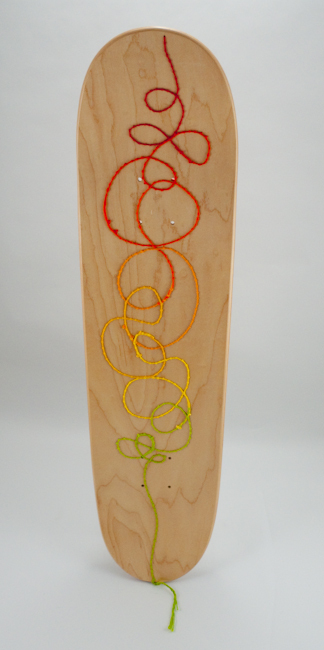 Designer and artist Martin Bunyi seamlessly brings together skateboarding and needlework with this striking embroidered skateboard deck.