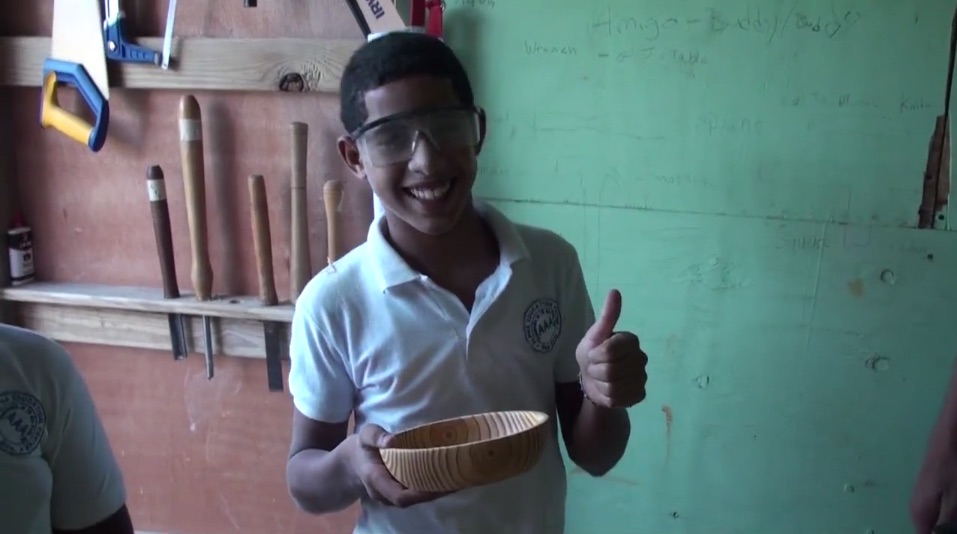 As you can clearly see in the video, the teens and the adults readily took to it, making tops, bowls, and the all-hallowed baseball bat. The smiles and looks of pride on their faces speak for themselves. Knowing the profound importance of baseball to this country’s culture, one can only imagine what kids might do with the ability to peddle out their own “yard lumber.”