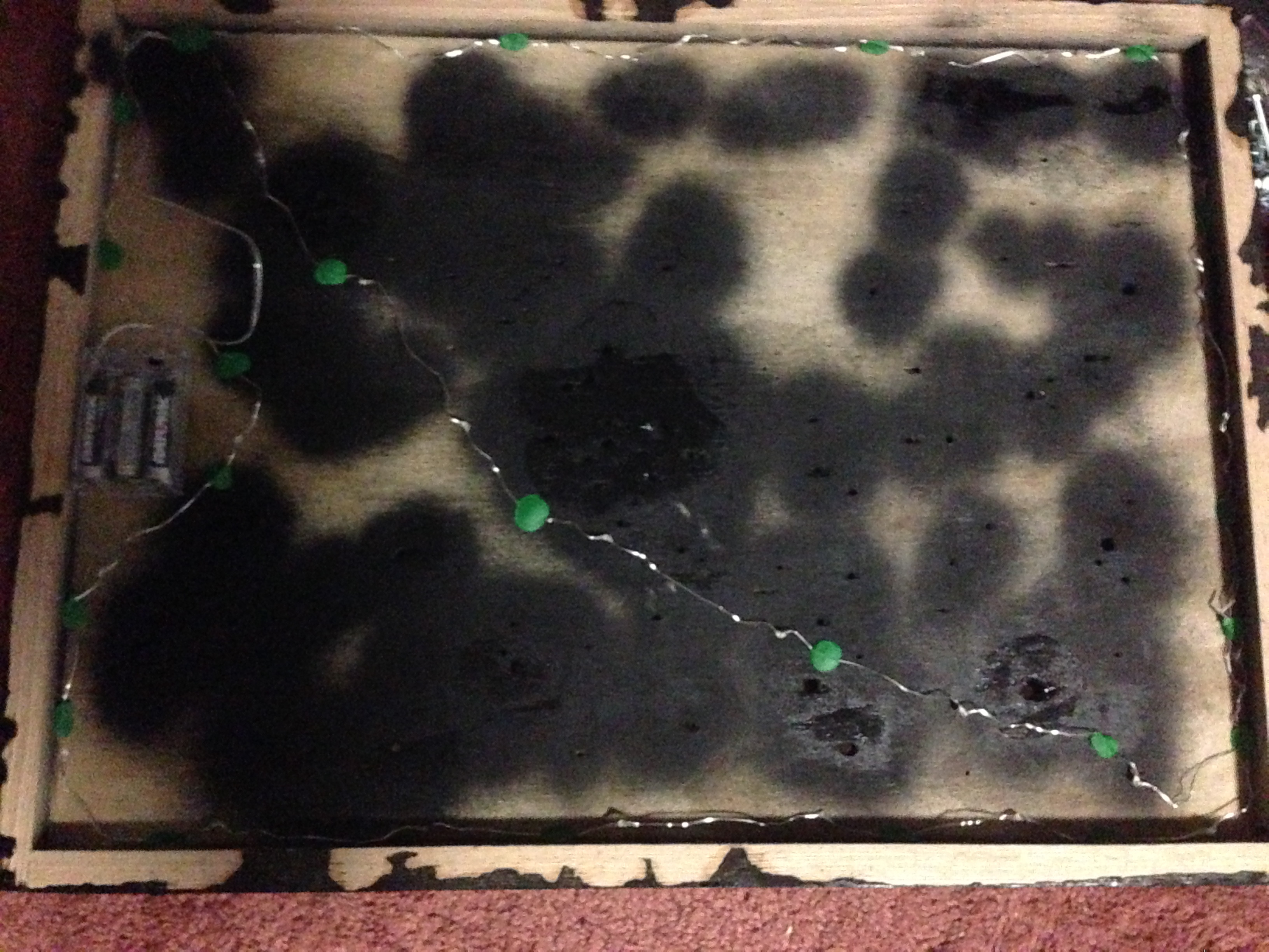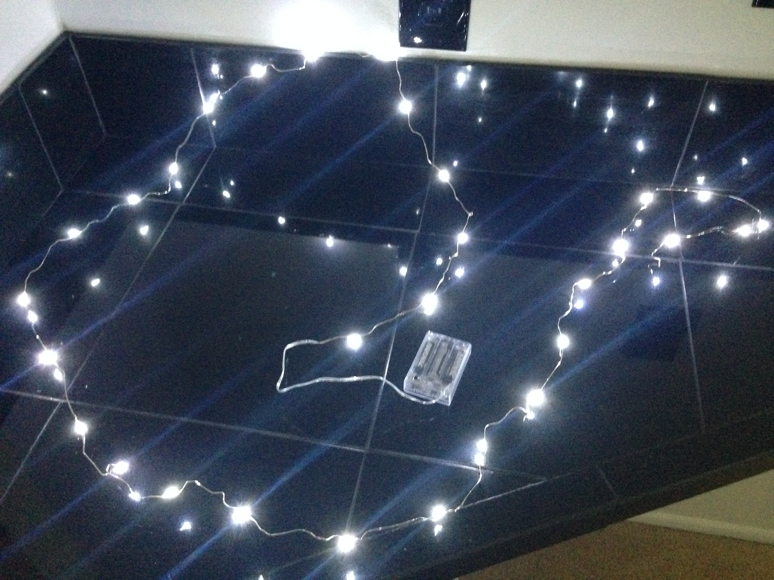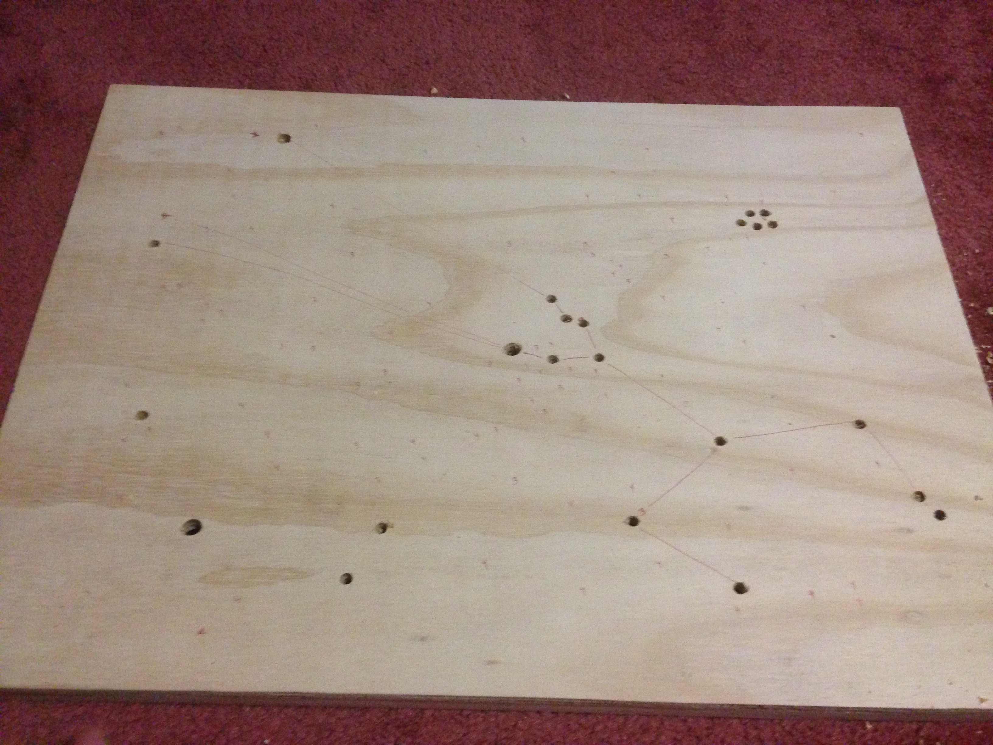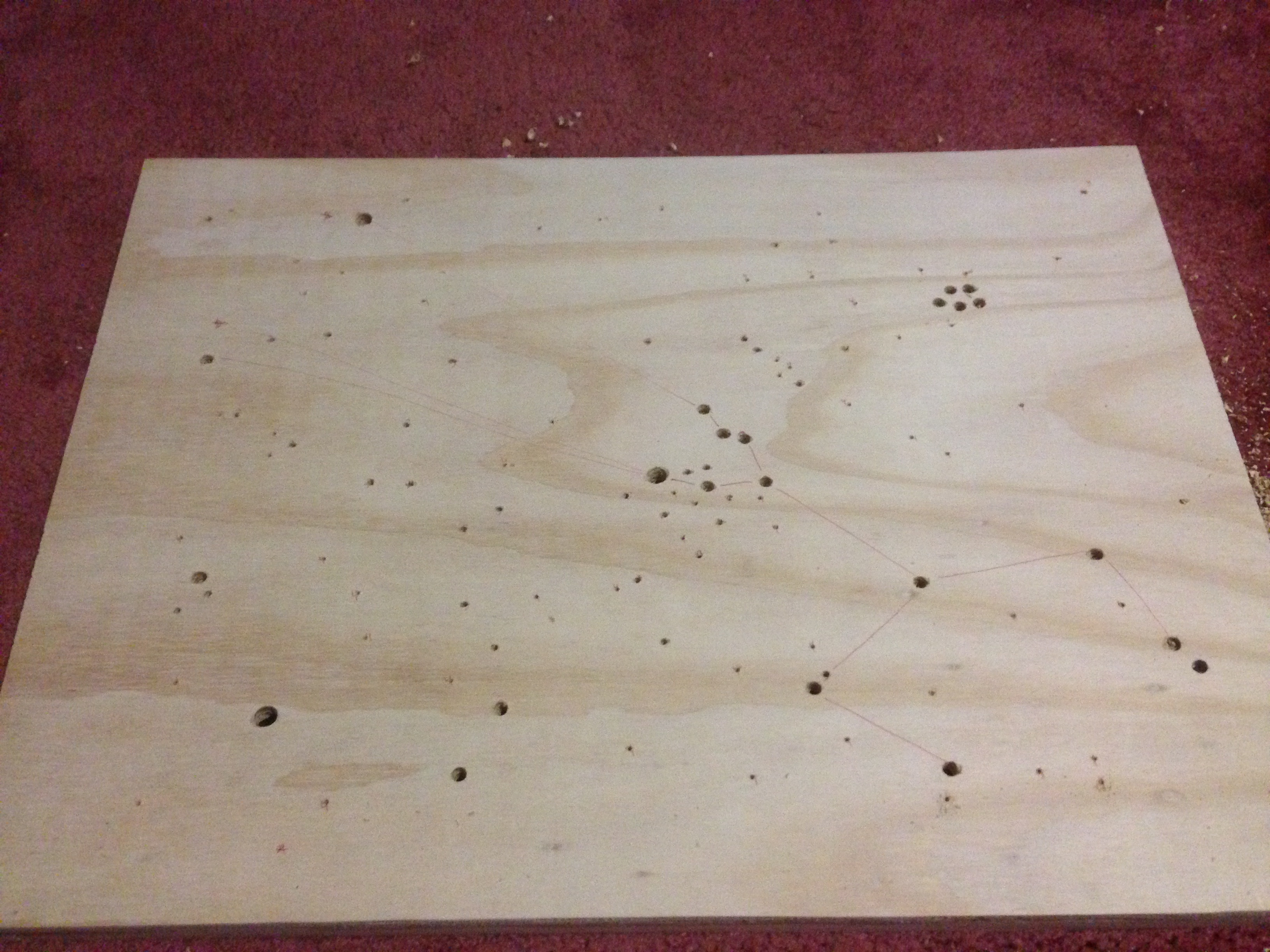 The artist shared their experimental walk-through as they mapped out their constellation, drilled the holes, painted the wood, an mounted the lights. The results are stunning!