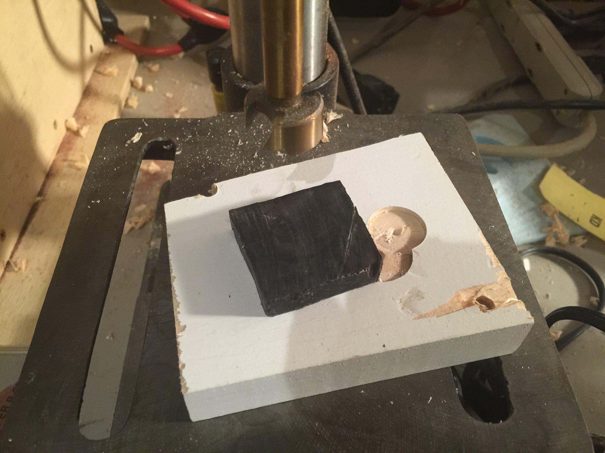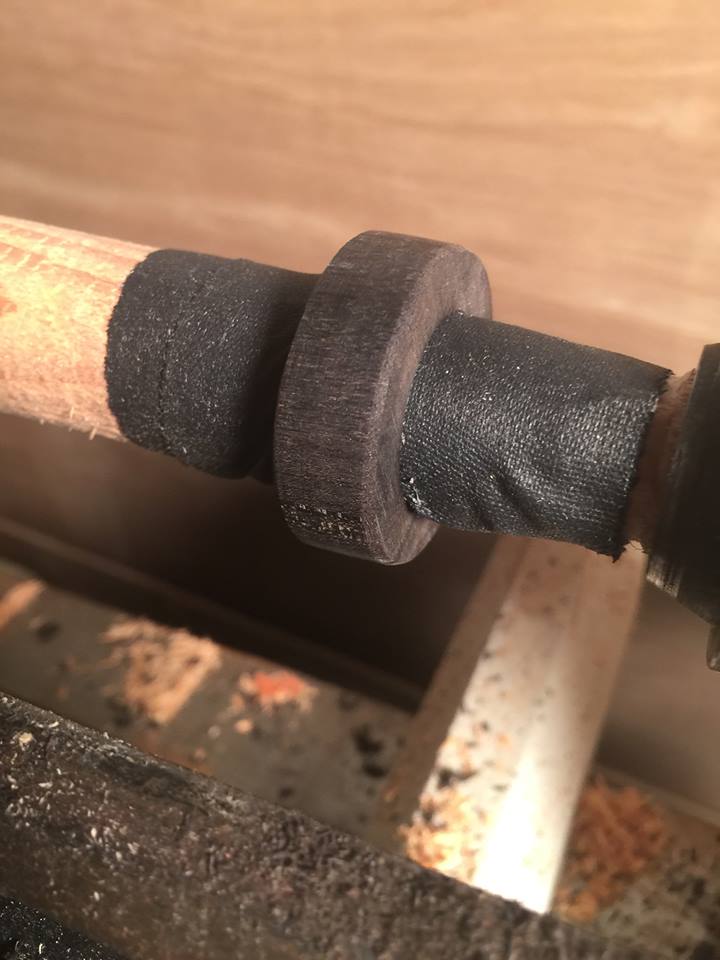 Woodshop to the rescue! I got back home on Monday and managed to whip this ring up in about an hour and a half. I picked ebony because it’s very dense and hard. I believe this wood will hold up to a bit more abuse than a softer wood might.