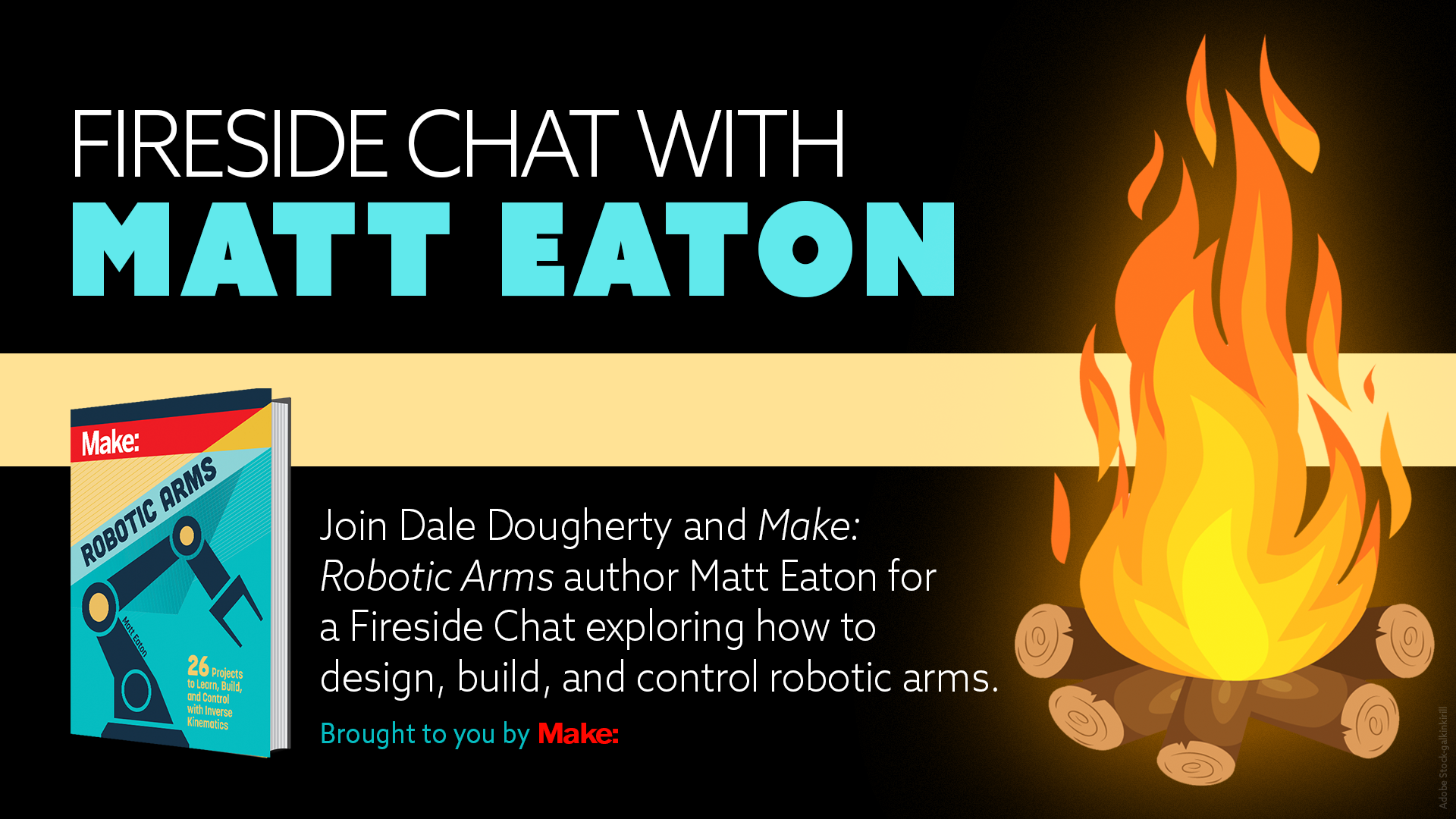 Join Dale Dougherty and Make: Robotic Arms author Matt Eaton for a Fireside Chat exploring how to design, build, and control robotic arms.
