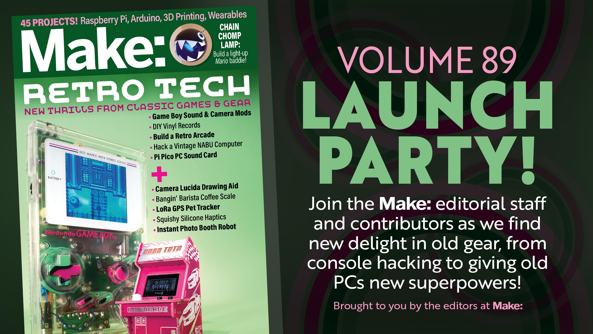 In Make: Volume 89, we look back at our technological past to see what fresh fun we can uncover! From handheld console hacking to giving old PCs state-of-the-art superpowers, we find new delight in old gear. Plus, over 45 projects, including a modern spin on a 19th century optical drawing aid, and a microcontroller-powered espresso machine scale that ensures a perfect pull every time. Register now for a chance to chat with our expert panel, as well as to join us for the virtual after-party!