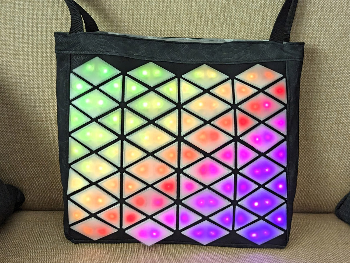 Of course, the Tessellated Tote is fundamentally a fashion accessory. You don’t need to recognize its futuristic tech or catch its subtle scientific references to enjoy its attractive design and colorful LED animations. And you can make it quite inexpensively depending on your choice of fabrics and LED controller.