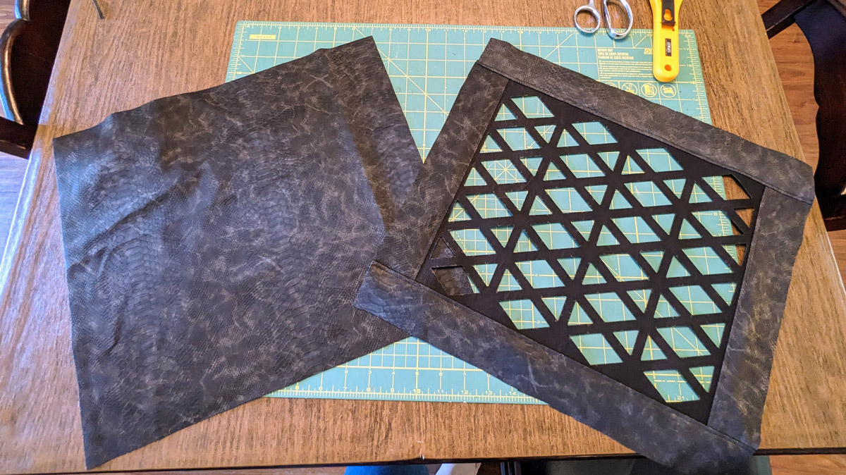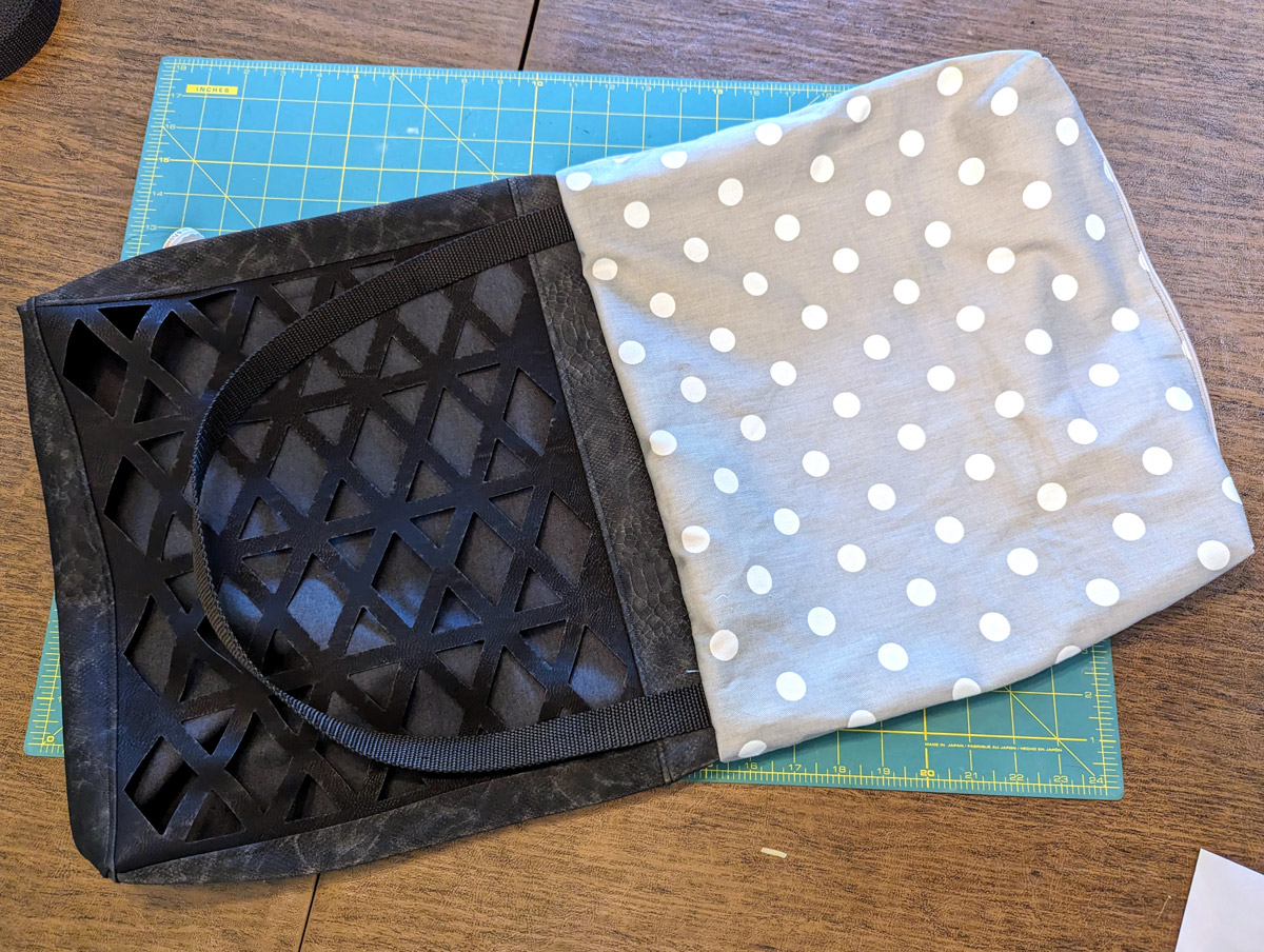 In addition, the tote holds a hidden homage to scientific discovery in its front panel. The 3D-printed diamond/triangle tessellation pattern represents a newly discovered type of exotic condensed matter — a bosonic crystal composed of particles called excitons packed tightly into two overlapping atomic lattices with this tessellated pattern. When turned at a slight angle to one another, the lattices interact in a moiré pattern that traps the excitons just so.