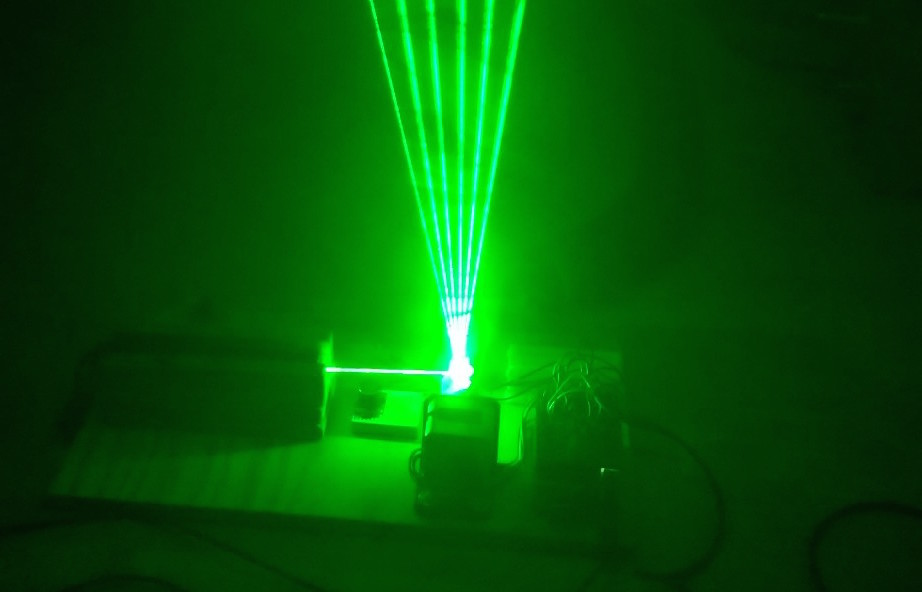 What I’ve built is known as a frameless laser harp. It fires a spread of lasers into the air. When you stick your hand into a beam, it plays a note.