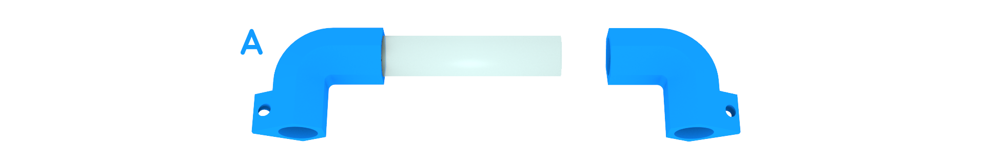 Now take both E pieces and the remaining width tube and connect them together. (For dogs smaller than 10 pounds, this step is not required; you can print a different version of piece E with no added support bar.)