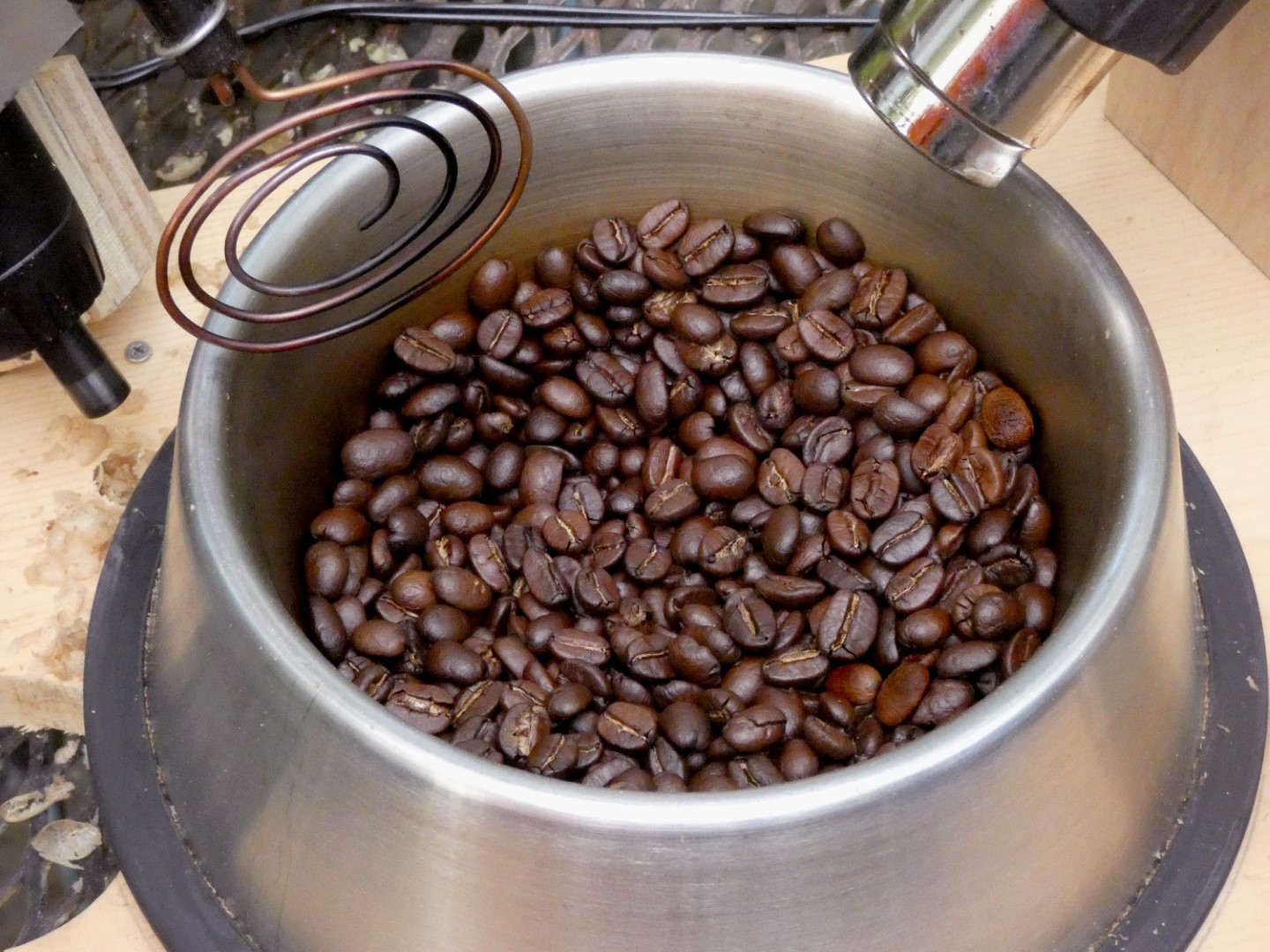 Here’s a cheap, quick, and reliable machine that roasts a decent amount of coffee beautifully with only 5 main parts: two $9 Black & Decker screwdrivers, a $15 heat gun, a cheap power supply and, oh yeah, a (new) dog bowl.