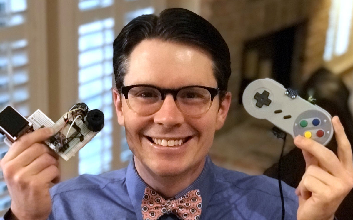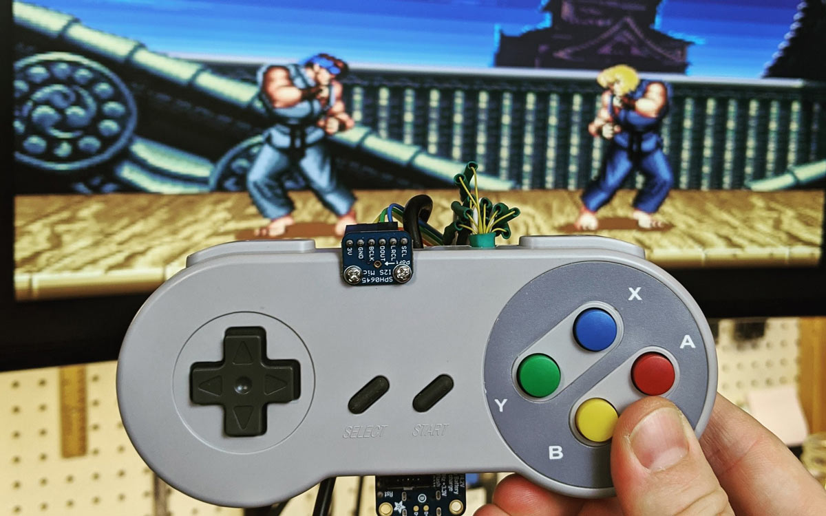 Embedded engineer and content creator Shawn Hymel imagined a new style of video game controller that requires players to yell directions or names of special moves. He modified a Super Nintendo (SNES Classic Edition) controller to respond to the famous Street Fighter II phrase hadouken. As a proof-of-concept, he trained a neural network to recognize the spoken word “hadouken!” then he loaded the trained model onto an Adafruit Feather STM32F405 Express, which uses TensorFlow Lite for Microcontrollers to listen for the keyword via MEMS microphone. Upon hearing the keyword, the controller automatically presses its buttons in the pattern necessary to perform the move in the video game, rewarding the player with a bright ball of energy without the need to remember the exact button combination. Shawn has a highly entertaining series of videos explaining how he made this project — and other machine learning projects — on Digi-Key’s YouTube channel. You can also find him on Twitter @ShawnHymel.