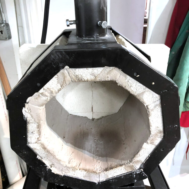 Next step was to coat the interior of the forge with multiple layers of the Satanite. These layers protect the bricks from the heat and can be reapplied when they’re burned, thereby prolonging the life of the firebricks.