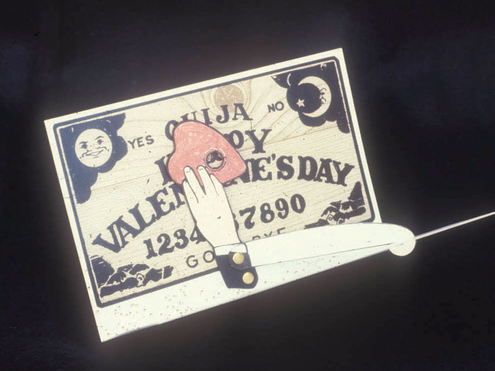 Want to send your Valentine a really special message this February 14th? Here’s an animated pop-up card you can make for Valentine’s Day. When you slowly open the card, a hand sweeps across and moves the heart-shaped planchette over the Ouija board, spelling out the message: “HAPPY VALENTINE’S DAY!” It’s both mysterious and romantic, perfect for any secret admirer to make and send.
