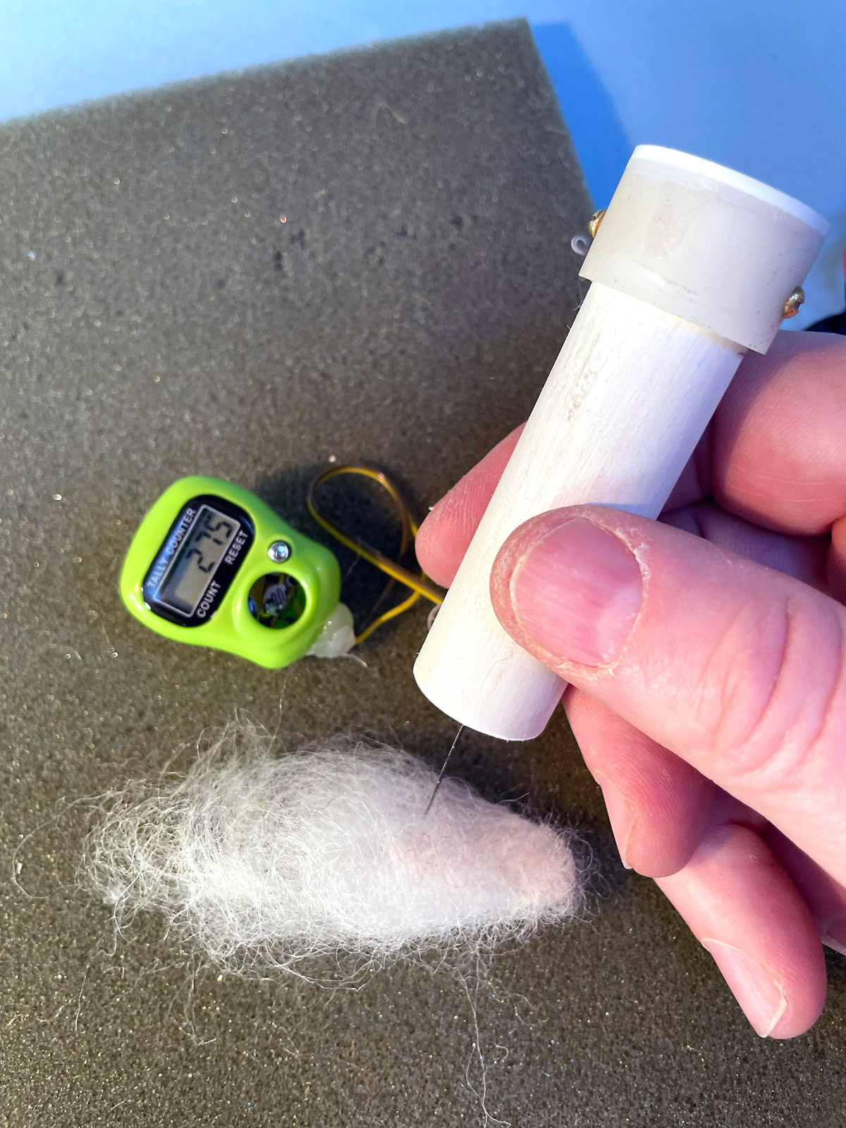 Now test the handle: Push down the felting needle to trigger both the sound player and counter (Figure M).
